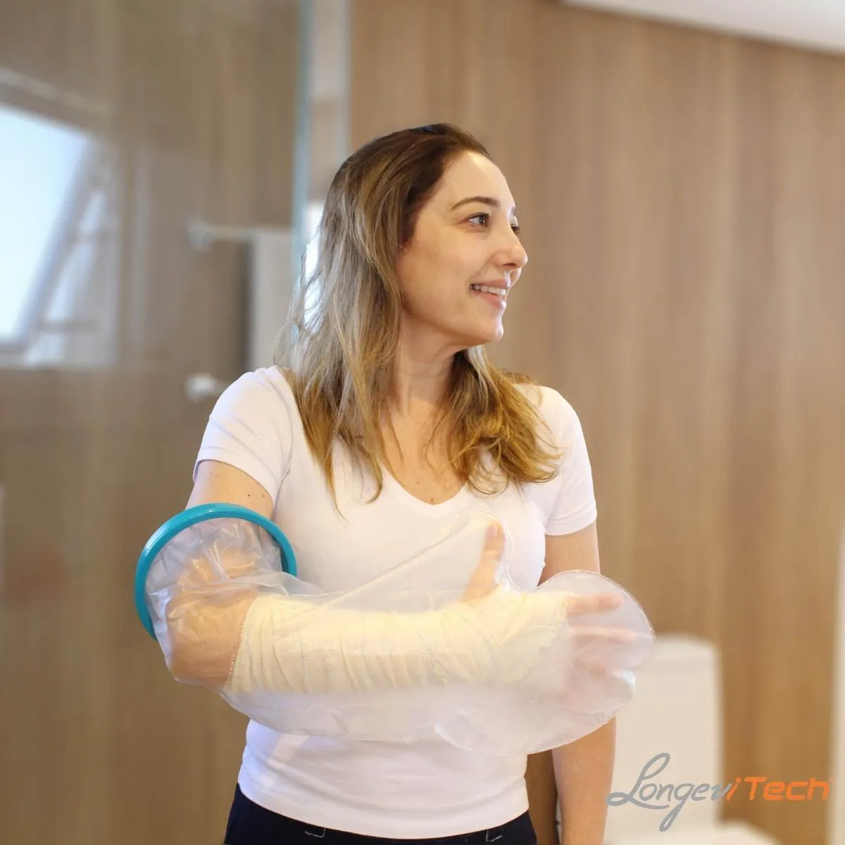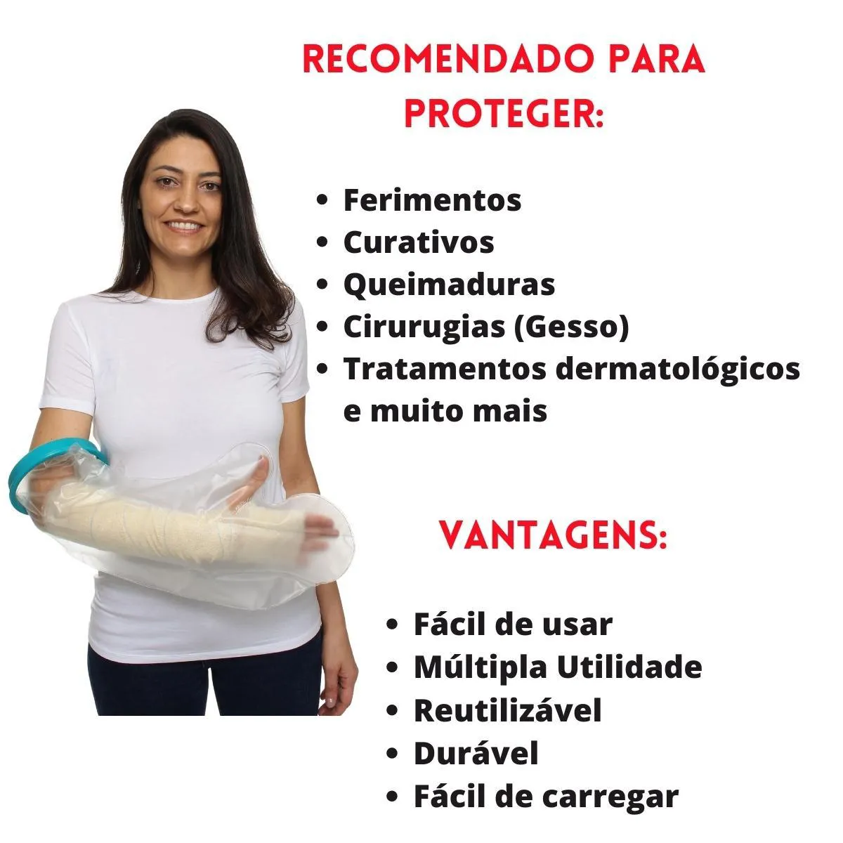 Projetado para proporcionar total proteção para curativos, gessos ou outro tipo de bandagem, o Protetor Impermeável para braços Longevitech, é ideal para manter seus curativos secos durante o banho.