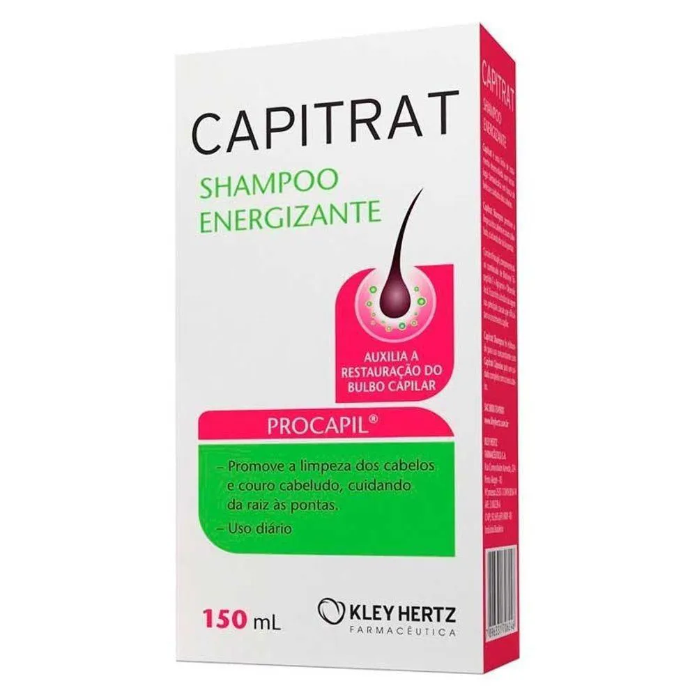 Capitrat é uma linha de tratamento desenvolvida com tecnologia farmacêutica em busca de beleza e cuidados dos cabelos. Capitrat shampoo promove a limpeza dos cabelos e couro cabeludo, cuidando da raiz às pontas. Contém Procapil, componente ativo combinado de Biotinoyl Tripeptide-1 + Apigenin + Oleanolic Acid. Essas três substâncias agem nas principais causas que dificultam o crescimento capilar. Capitrat Shampoo foi elaborado para o uso concomitante com Capitrat cápsulas para um cuidado completo com os seus cabelos. Modo de usar: Distribuir o produto sobre os cabelos molhados e massagear. Deixar agir por 3 minutos e enxaguar. Repetir o procedimento se necessário. Capitrat shampoo auxilia a restauração do bulbo capilar. Uso diário