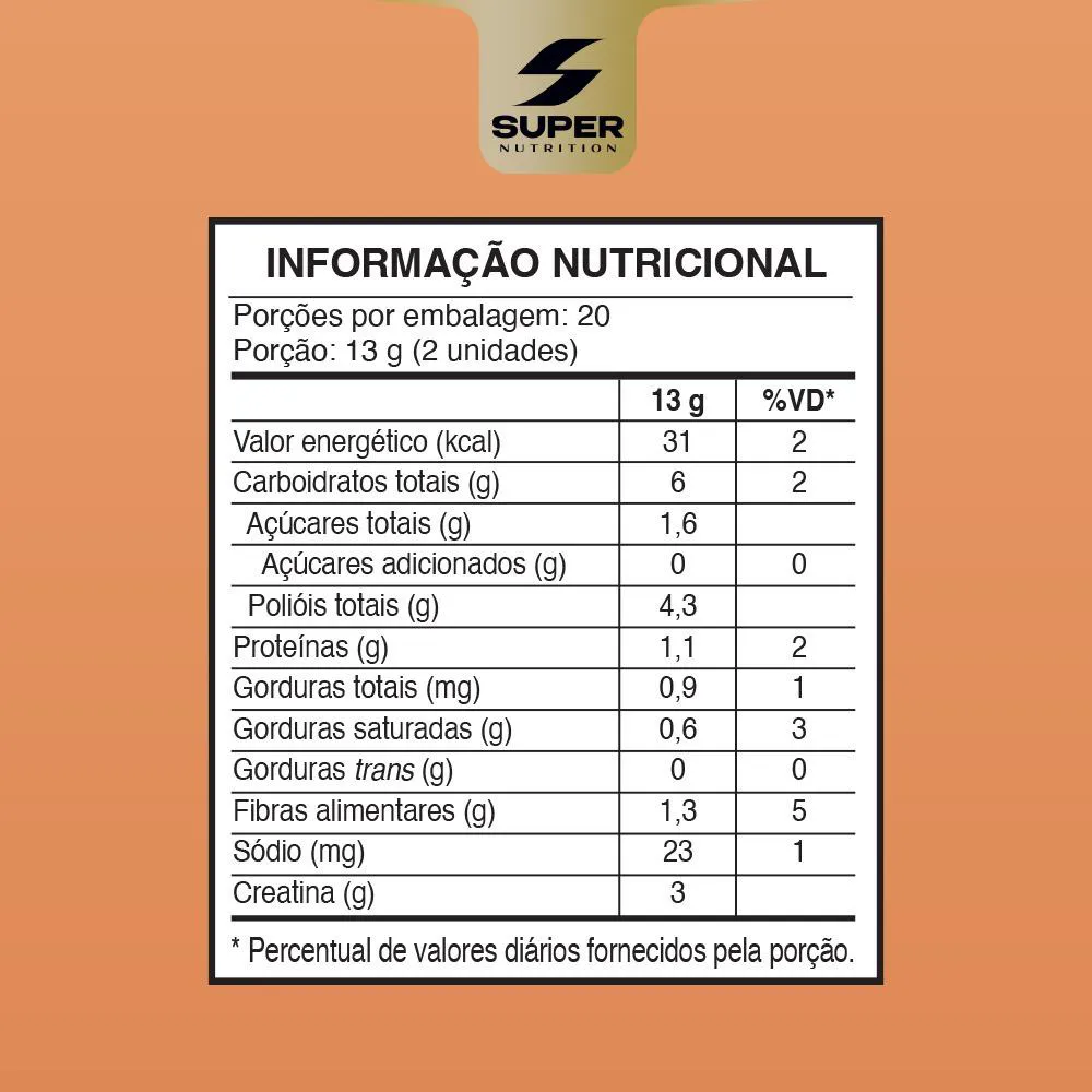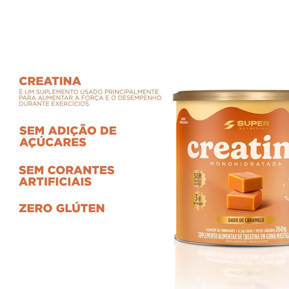 Conheça a creatina Monohidratada Dado de Caramelo exclusiva da Super Nutrition. Sem Adição de Açúcar, Sem Glúten e Melhora o Desempenho Físico.