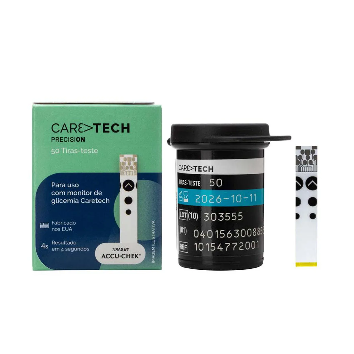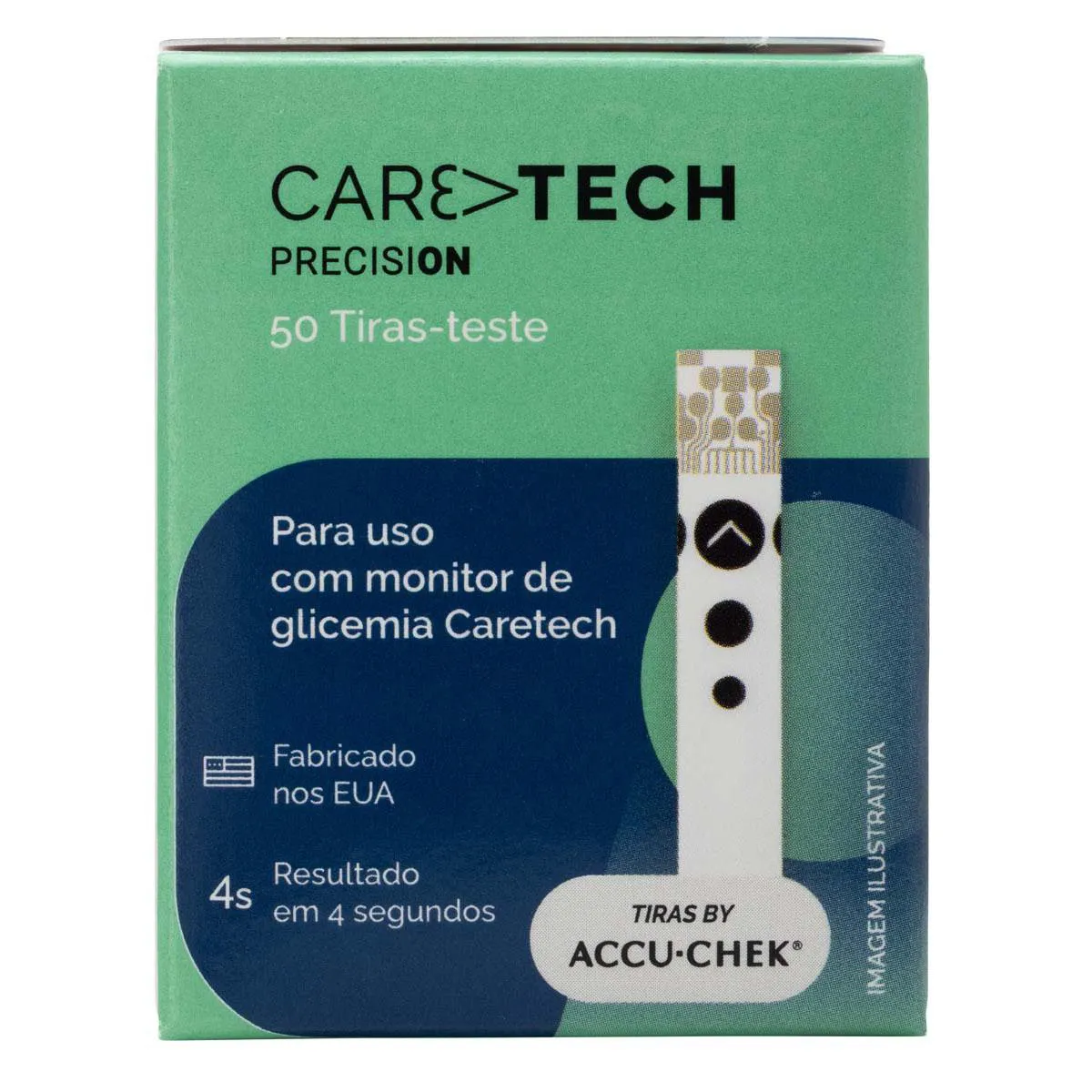 As Tiras-Teste de Glicemia Caretech Precision by Accu-Check 50 unidades e o monitor de glicemia CareTech são indicados para a medição quantitativa da glicose em sangue total capilar fresco obtido do dedo, da palma da mão, do antebraço e do braço, sendo um recurso auxiliar para monitorar a eficácia do controle da glicemia.