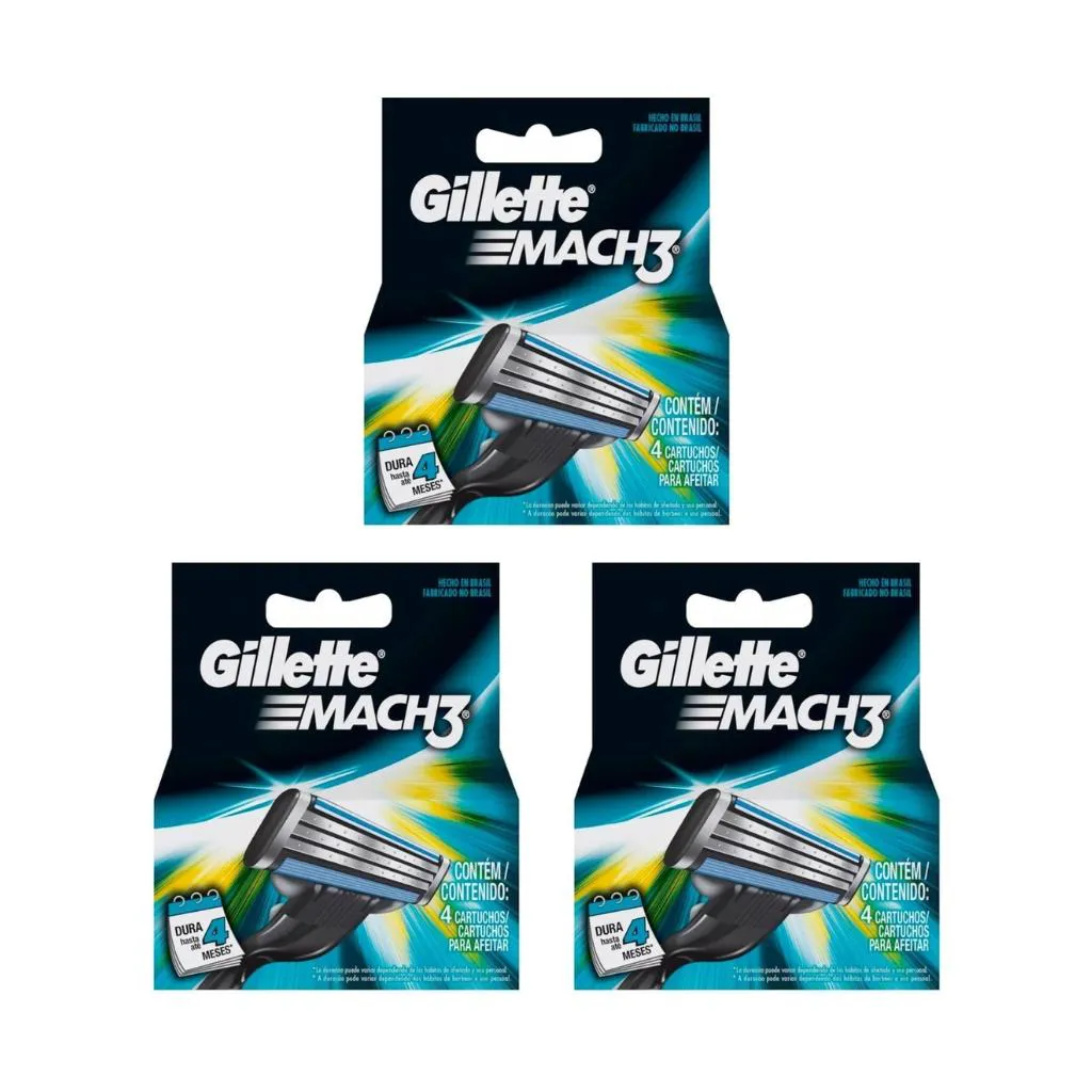 Descrição: A carga de barbeador Mach 3 tradicional com 4 unidades é uma solução de alta performance para um barbear suave, rente e duradouro. Cada embalagem contém quatro unidades dessa carga excepcional, projetada para proporcionar um barbear confortável e sem irritações. A carga de barbeador Mach 3 tradicional possui três lâminas precisamente posicionadas, que garantem uma remoção eficiente dos pelos, minimizando a necessidade de repetições. A primeira lâmina, mais fina, levanta os pelos para a segunda lâmina, mais afiada, cortá-los mais rente. A terceira lâmina, com microabrasivos, ajuda a remover os pelos encravados e a amaciar a pele. Modo de usar: