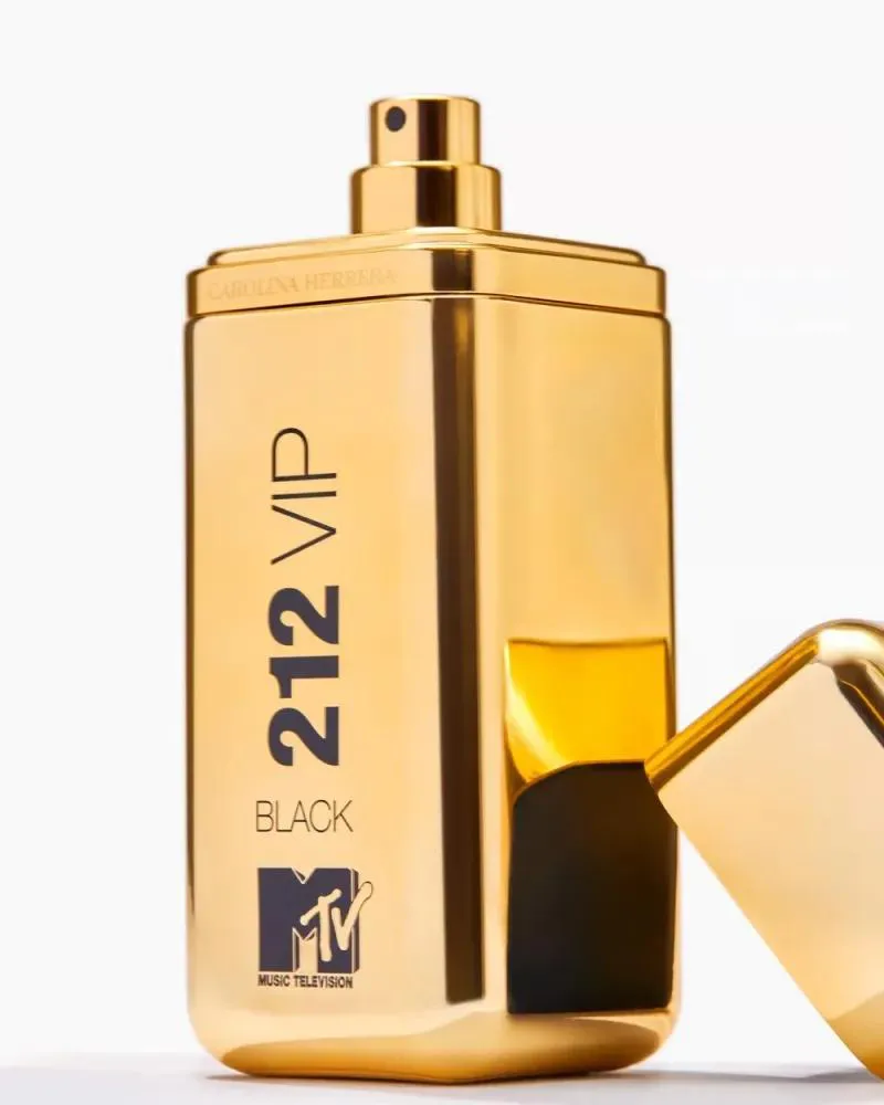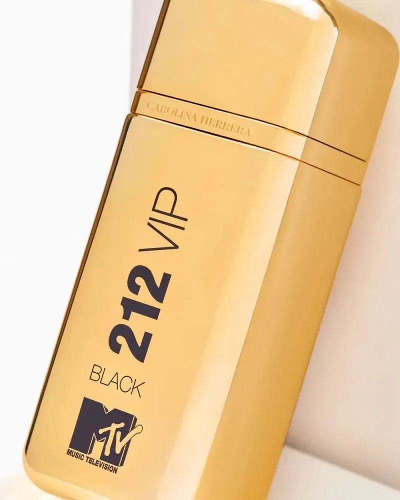 - Design do Frasco: O icônico frasco do 212 VIP Black é transformado em um dourado polido elegante, adornado com os logotipos emblemáticos da MTV e da Carolina Herrera, refletindo o luxo e a energia da cultura pop.