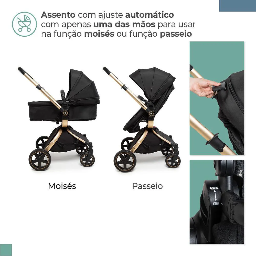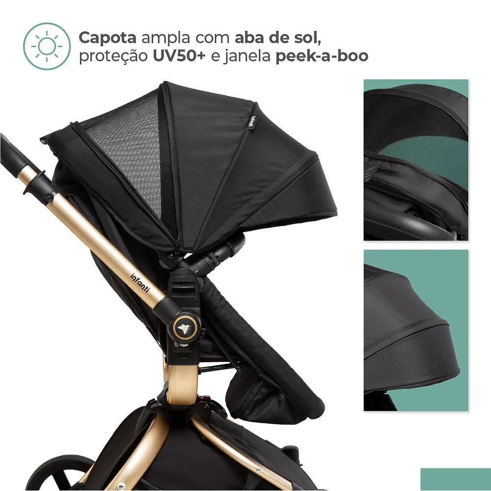 Carrinho com Bebê Conforto e Base Travel System Epic 360º Trio Isofix Preto Ouro - Infanti