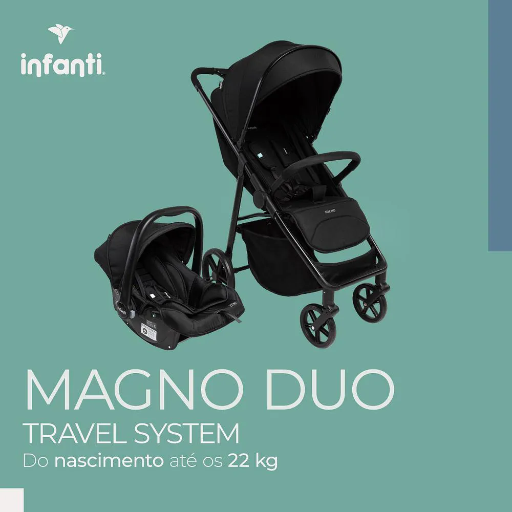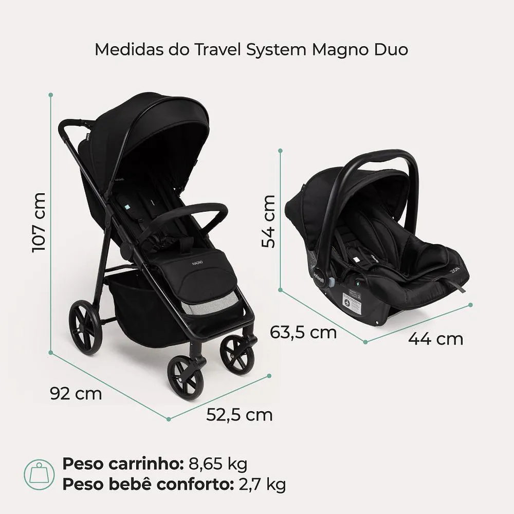 Carrinho com Bebê Conforto Travel System Magno Duo Preto Infinito - Infanti