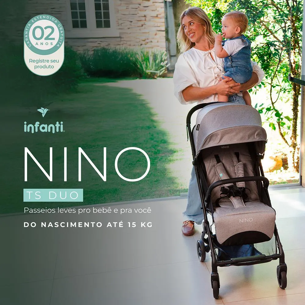 O Carrinho Com bebê conforto Travel System Nino Duo é um conjunto composto por um carrinho e um bebê conforto projetado para acompanhar o bebê desde o nascimento. É um sistema de transporte completo e versátil, desenvolvido para oferecer mobilidade, segurança e conforto para famílias com bebês, permitindo deslocamentos práticos em diferentes ambientes, como casa, cidade e viagens.