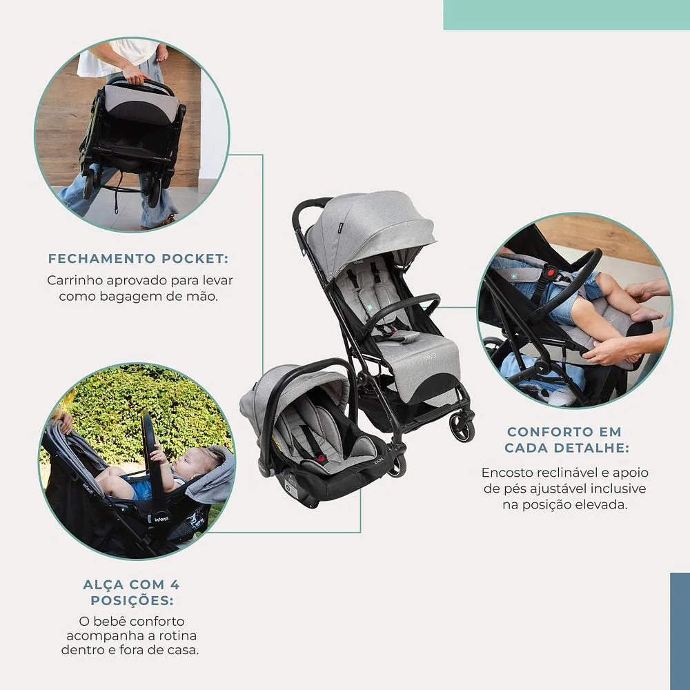Carrinho com Bebê Conforto Travel System Nino Duo Cinza Urbano - Infanti