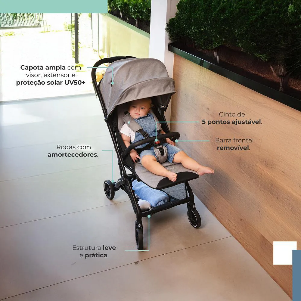 - Capota ampla com proteção UV50+ para proteção solar.