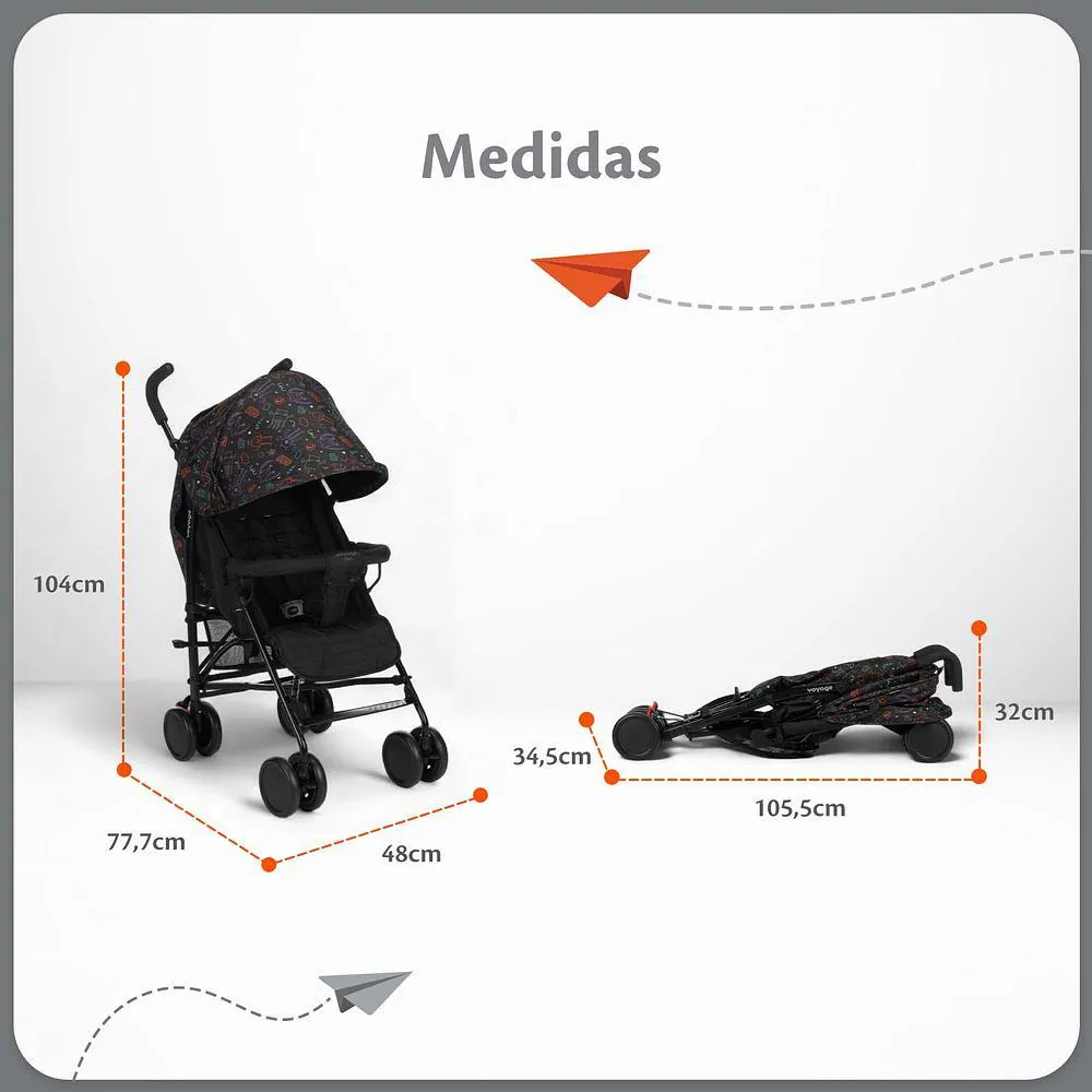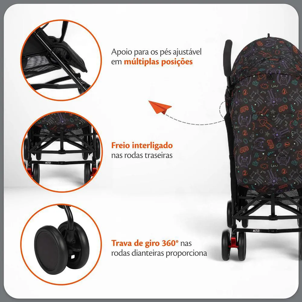 Carrinho de Bebê Guarda-Chuva Pipa Preto Neon - Voyage