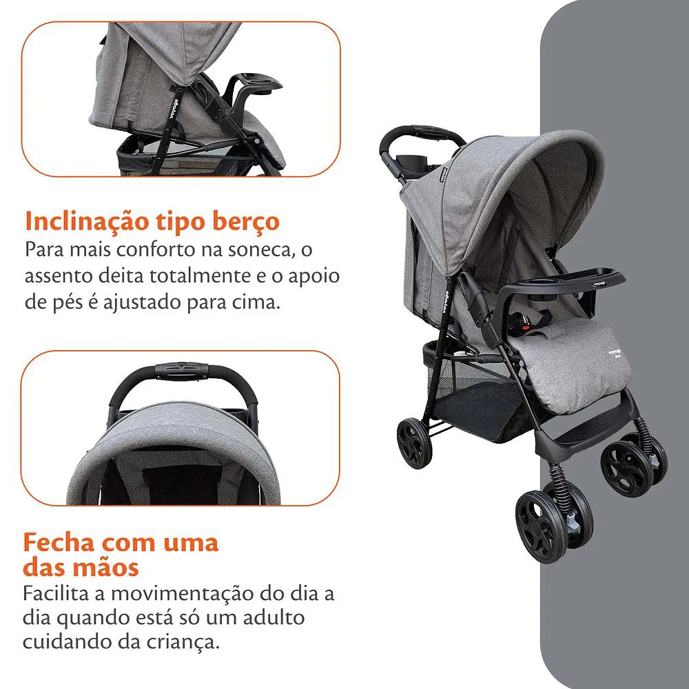 Carrinho de Bebê Jobim Cinza Mescla - Voyage