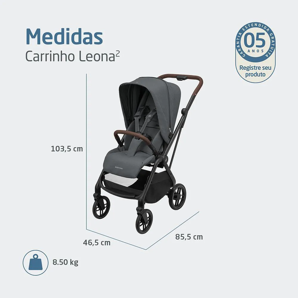 O Carrinho de Bebê Leona² da Maxi-Cosi combina design premiado, praticidade e conforto em um modelo leve e compacto. Ideal para famílias urbanas, acompanha o bebê desde o nascimento até 4 anos (22 kg), com fechamento rápido com uma mão, assento reversível e ajuste de altura que cresce junto com a criança.