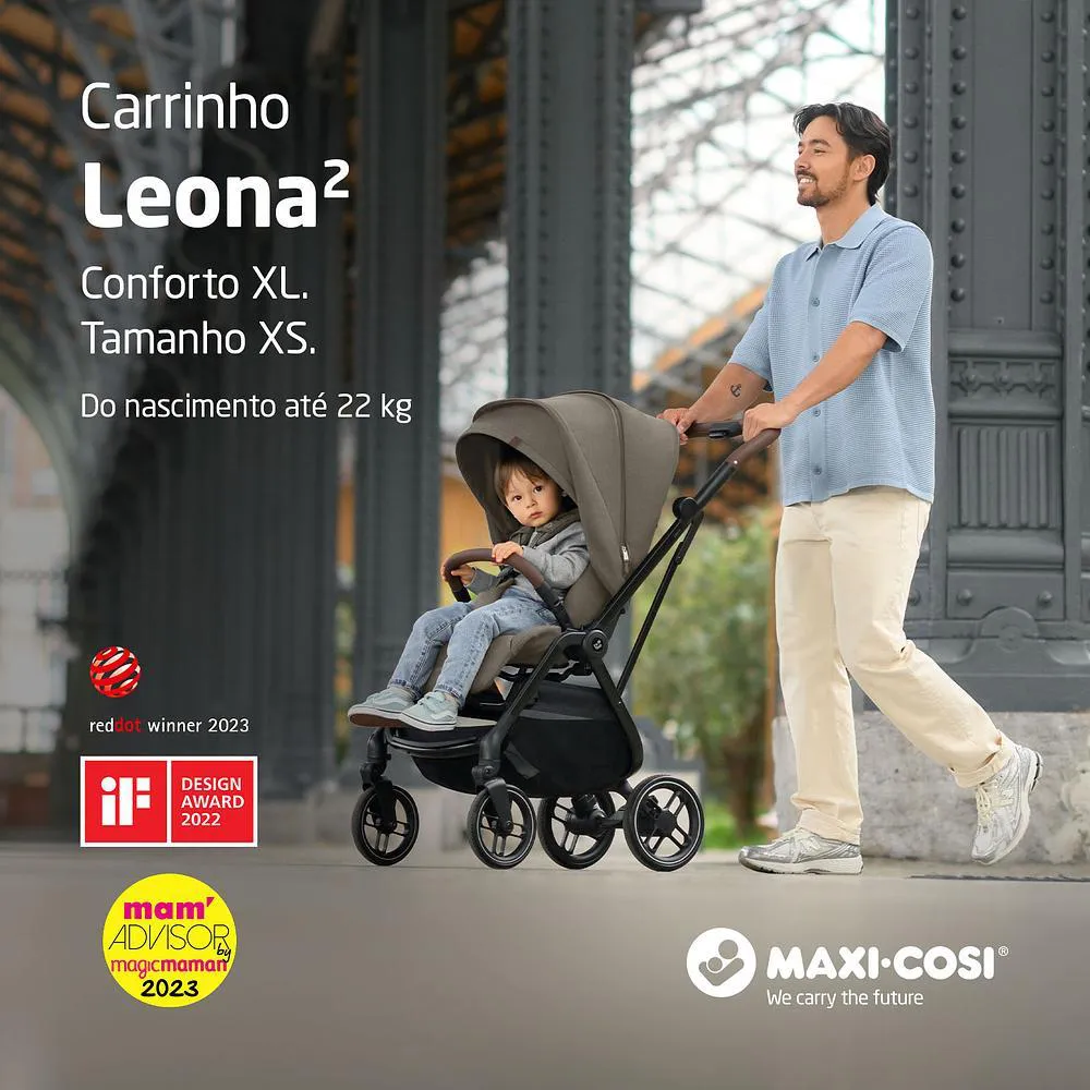 O Carrinho de Bebê Leona² da Maxi-Cosi combina design premiado, praticidade e conforto em um modelo leve e compacto. Ideal para famílias urbanas, acompanha o bebê desde o nascimento até 4 anos (22 kg), com fechamento rápido com uma mão, assento reversível e ajuste de altura que cresce junto com a criança.