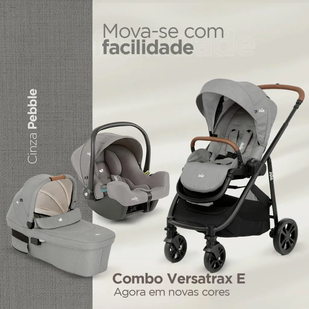 Carrinho de Bebê Travel System Trio Versatrax e Pebble Cinza + Brinde Exclusivo - Joie