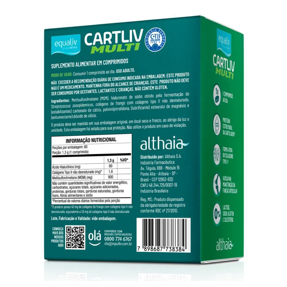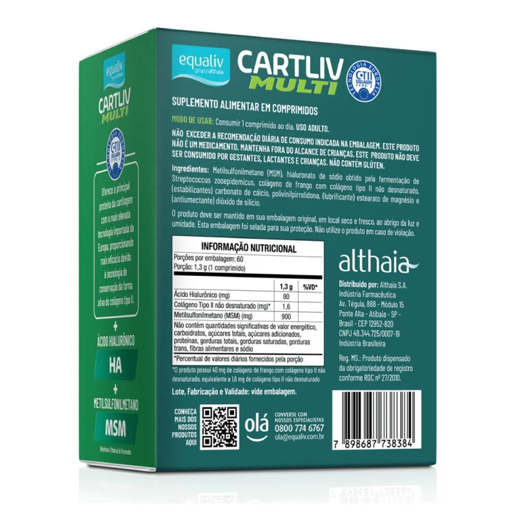 Cartliv Multi Colageno Tipo II+Ha+Msm 60cp Rev - EqualivDescrição