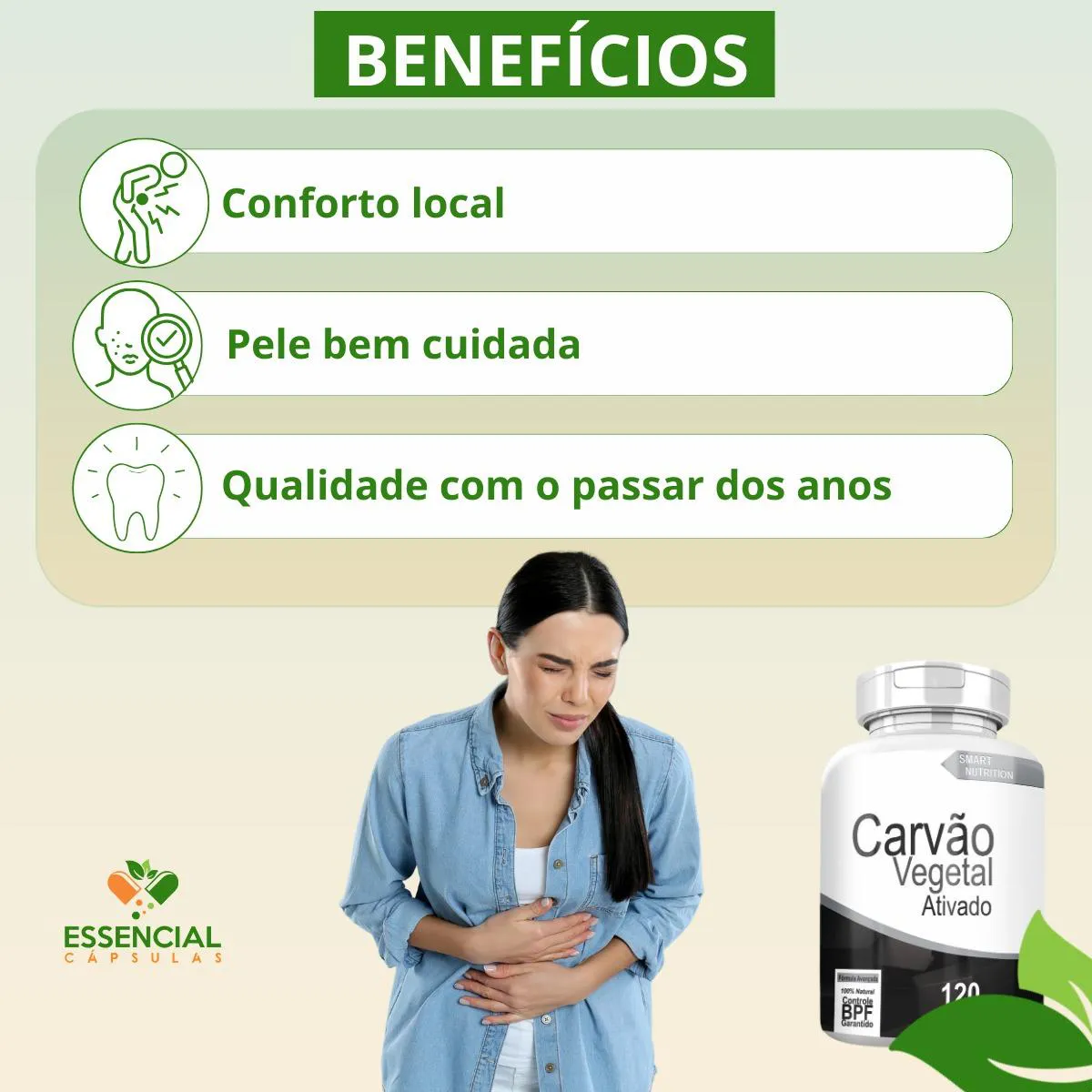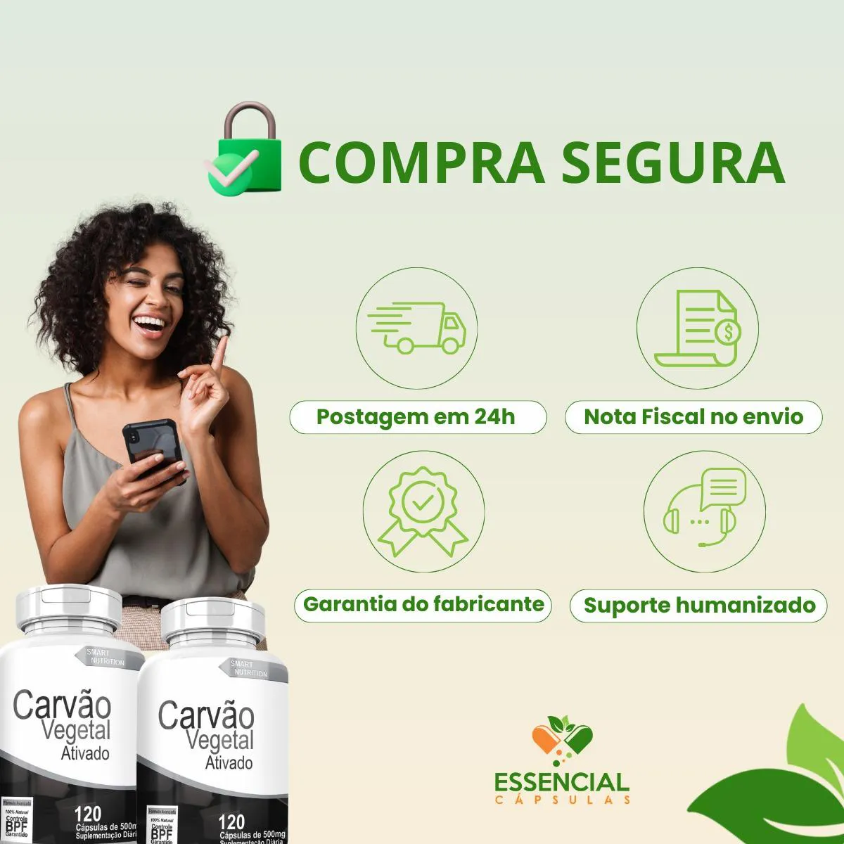 BEM VINDO(A) À ESSENCIAL CÁPSULAS Aqui, acreditamos que cuidar da saúde pode (e deve) ser algo natural, leve e diário. PRODUTO: - Carvão Vegetal Ativado MARCA: - 4Elementos BENEFÍCIOS: ● Utilizado em práticas voltadas ao bem-estar digestivo ● Leveza para sua rotina diária SUGESTÃO DE CONSUMO (PELO FABRICANTE): - 01 cápsula de uma a três vezes ao dia - Ingerir com 200ml de água IMPORTANTE SABER: - Este produto é um suplemento alimentar natural. - Não é medicamento e não substitui uma alimentação equilibrada nem o acompanhamento de um profissional da saúde. - Como um produto natural, seus benefícios podem ser vistos a partir de alguns dias do uso. - Os suplementos são destinados a pessoas saudáveis. Sua finalidade é fornecer nutrientes, substâncias bioativas, enzimas ou probióticos em complemento à alimentação. COMPOSIÇÃO: - CARVÃO VEGETAL EM PÓ. NÃO CONTÉM GLÚTEN CONTRAINDICAÇÃO: - O uso não é recomendado para gestantes, lactantes e crianças. - Em caso de uso contínuo de medicamentos ou condições específicas de saúde, busque a orientação de um profissional da saúde. QUALIDADE: - Sabemos que o mercado de suplementos é competitivo, com opções para todos os públicos e faixas de preço. Na nossa loja, priorizamos a qualidade em cada detalhe. Por isso, escolhemos trabalhar apenas com fábricas que utilizam matérias-primas de excelência e seguem rigorosos padrões de produção. ENVIAMOS RAPIDINHO: - Seu pedido é preparado com todo cuidado e postado em até 24 horas úteis após a confirmação da compra. (Na maioria das vezes, enviamos bem antes disso)! FALE CONOSCO: Tem dúvidas ou quer conversar sobre o produto? Nosso atendimento é humanizado e está sempre pronto para te ouvir com muita atenção!