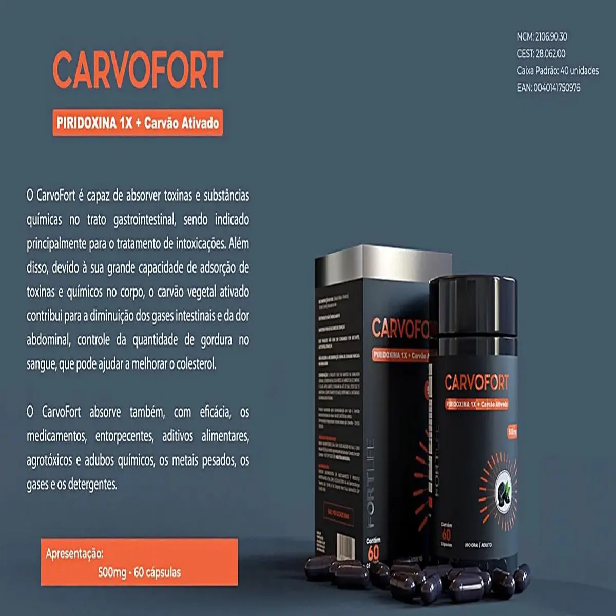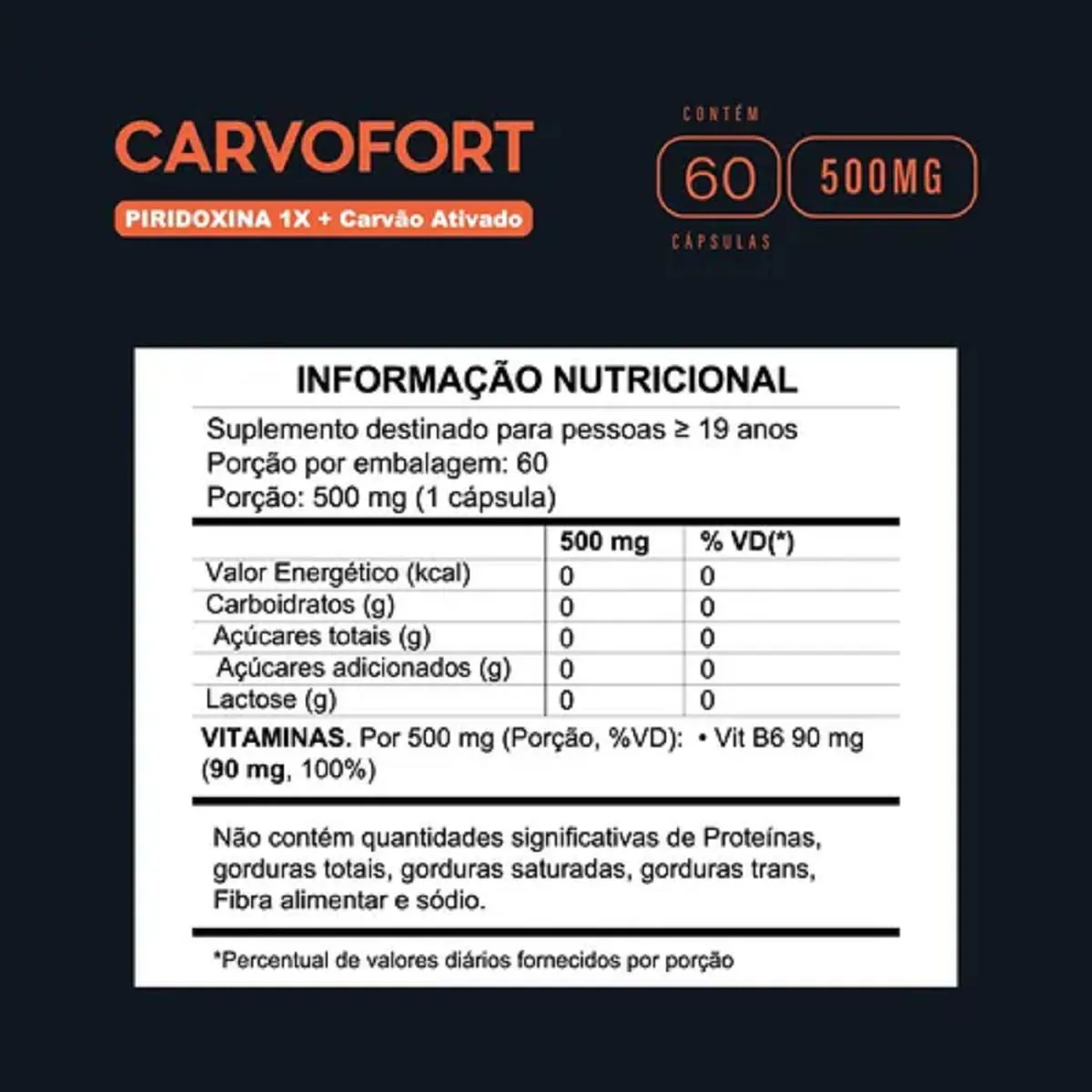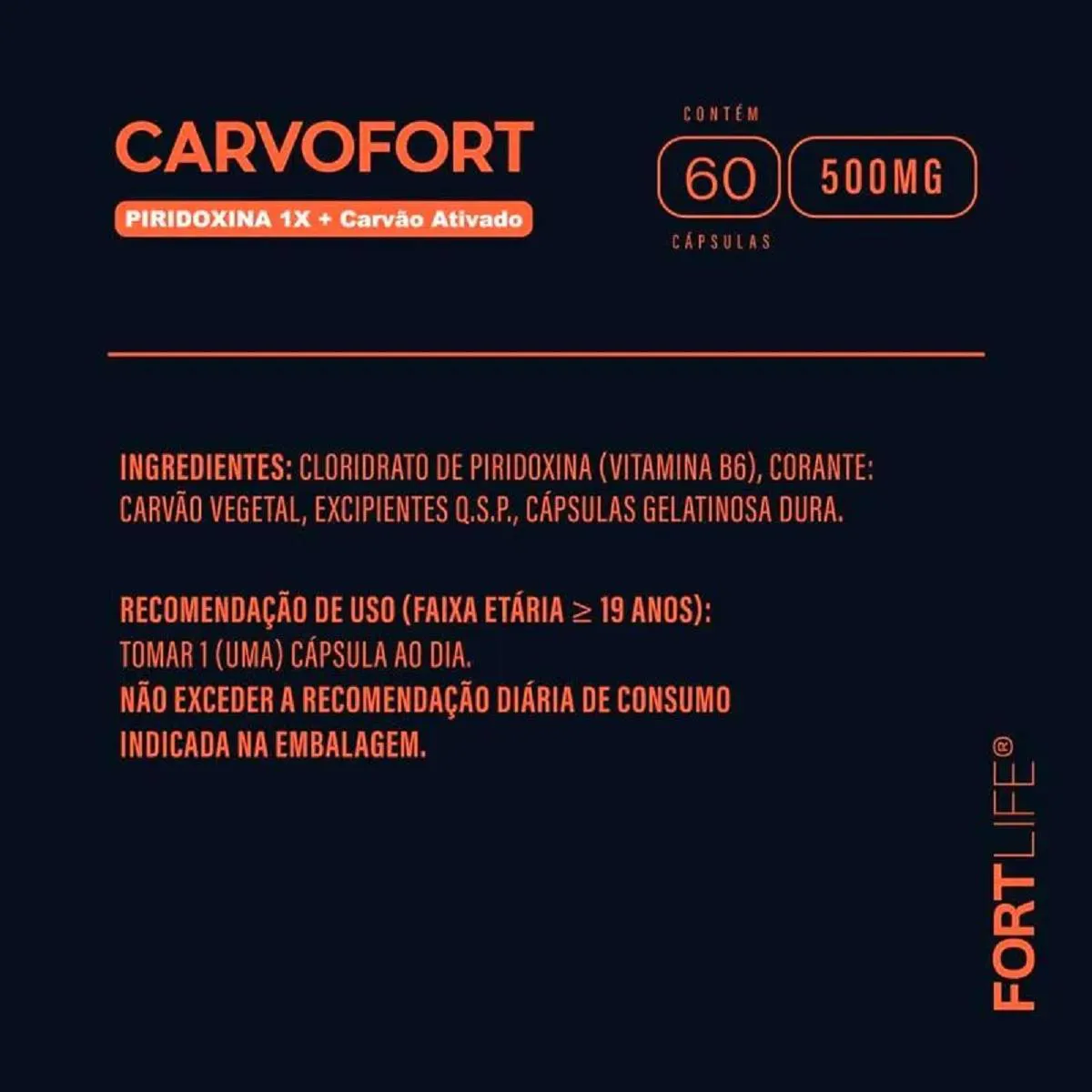 Carvofort Piridoxina + Carvão Ativado 60 Cápsulas - Fortlife