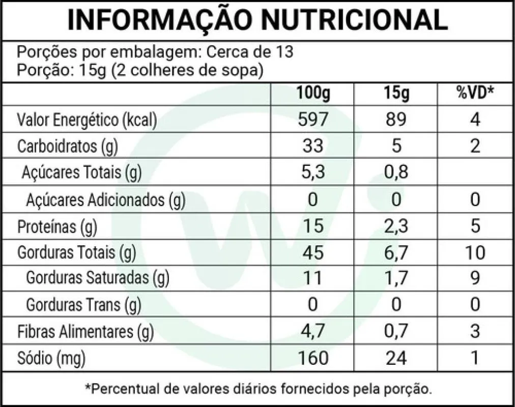 Alergênicos: contém castanha de caju; pode haver traços de amêndoa, amendoim, avelã, castanha-do-Pará, noz, pecã e pistache