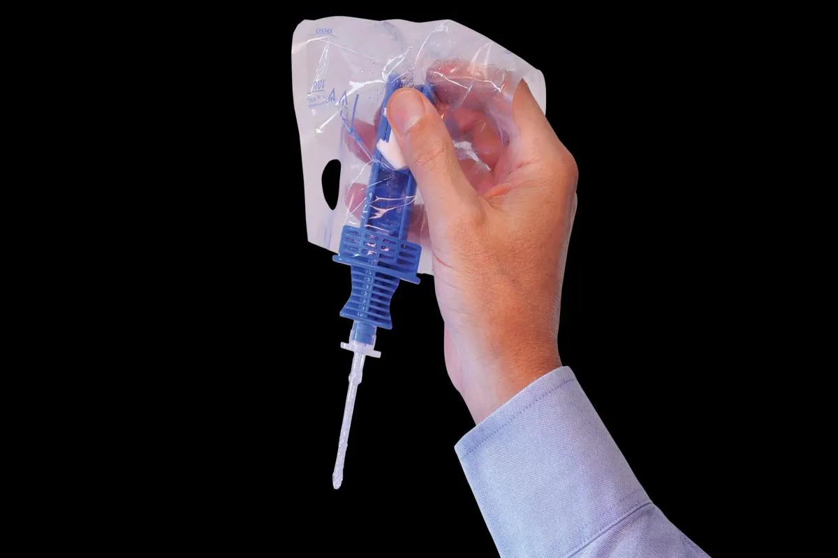 O Cateter Urinário Intermitente Sistema Fechado Cure Dextra - Convatec é um produto único, ou seja, cateter e bolsa coletora de urina formam uma única peça.