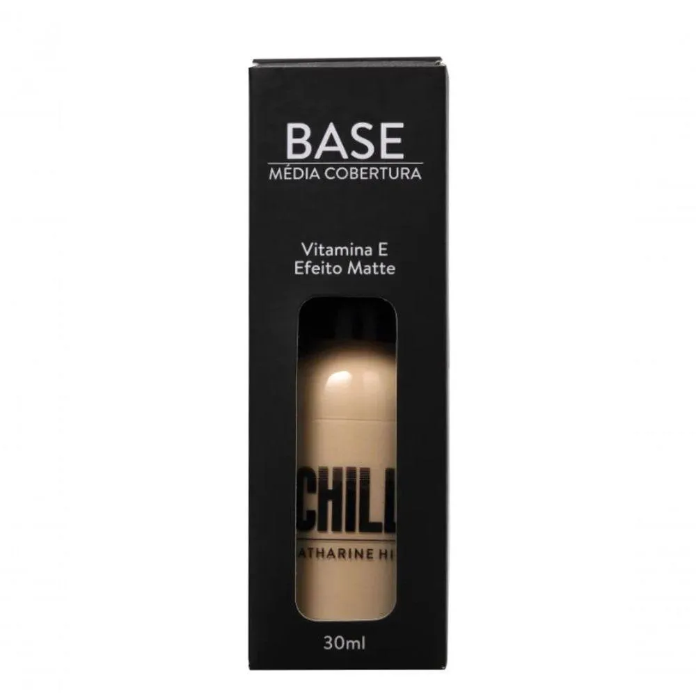 - Base líquida com acabamento matte. Catharine Hill Chill Base Média Cobertura deixa o rosto com tom uniforme de maneira natural e duradoura, já que sua fórmula é resistente à água e se adere muito bem à pele.