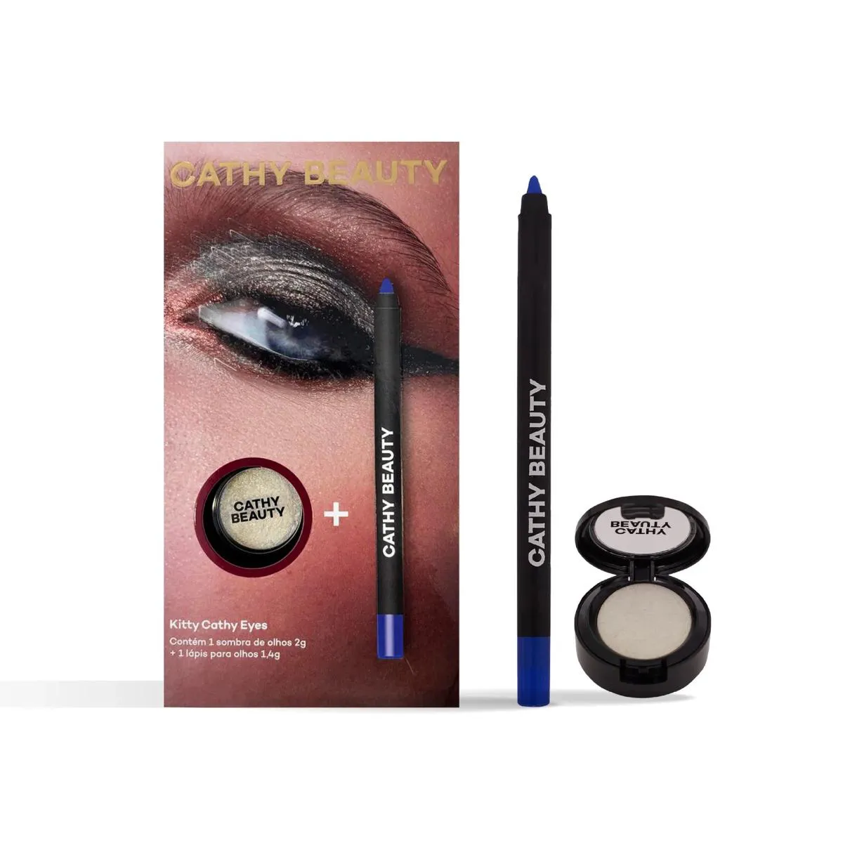 Exclusivo Kitty Cathy Eyes Kit com sombra de olhos Uno Eyestalk em pó compacta, de alta pigmentação e longa duração. Acompanha o lápis de olhos Cateyes, à prova d'Água, com textura macia e fácil deslize, garantindo traço preciso e longa fixação. Sombra Eyestalk contém 2g Lápis Cateyes contém 1,4g > Dermatologicamente testado.