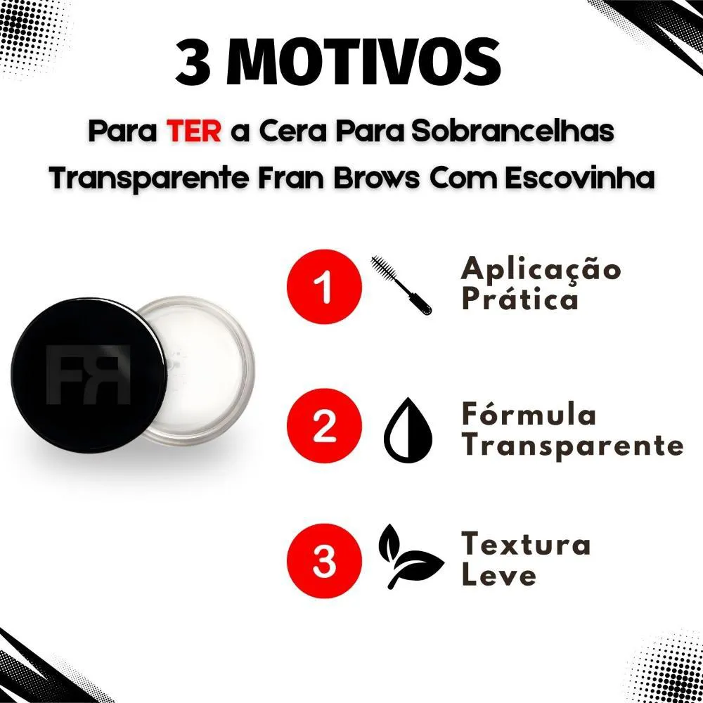 A Cera Para Sobrancelhas Transparente By Franciny Ehlke Fran Brows Com Escovinha é a solução ideal para quem busca sobrancelhas perfeitamente alinhadas e com um acabamento natural. Este produto foi desenvolvido para proporcionar fixação duradoura, mantendo os fios no lugar durante todo o dia, sem deixar resíduos. Ideal para todos os tipos de sobrancelhas, realça a beleza natural do seu olhar com praticidade e eficácia. Com sua fórmula transparente e fácil aplicação, você conquista sobrancelhas impecáveis em segundos, elevando sua autoestima e realçando sua beleza natural. Perfeita para quem busca praticidade sem abrir mão de um resultado profissional, a cera para sobrancelhas é um item indispensável na sua nécessaire.Benefícios Principais
