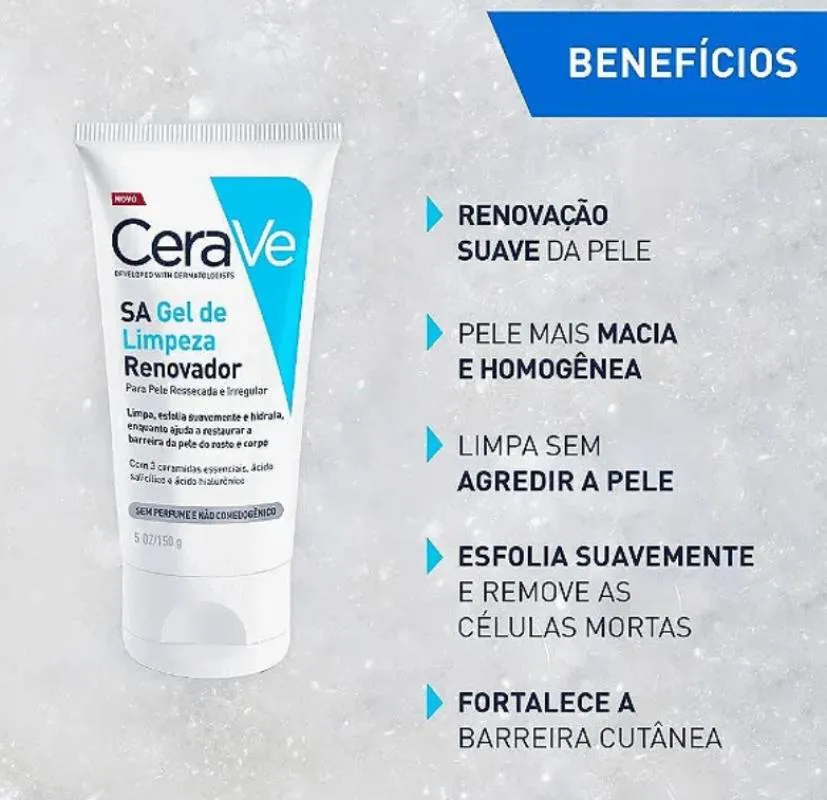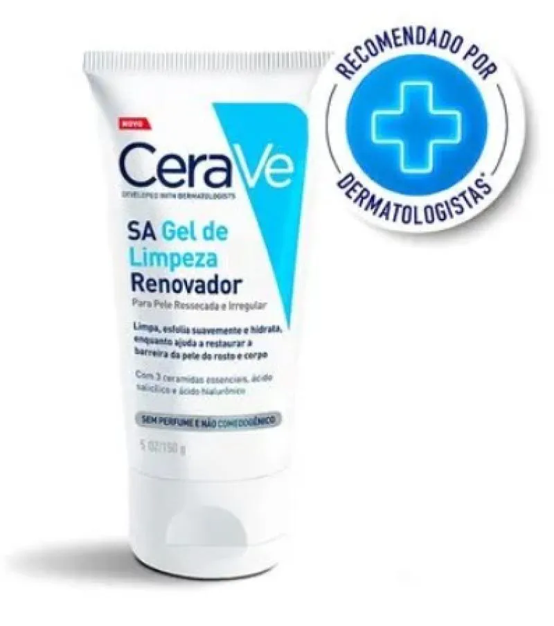 Com efeito esfoliante, Cerave SA Gel de Limpeza Renovador é um gel de limpeza suave para pele seca, àspera e irregular. Uma fórmula desenvolvida por dermatologistas com ácido salicílico para melhorar a textura da pele e garantir uma limpeza delicada, mantendo o equilíbrio cutâneo essencial.