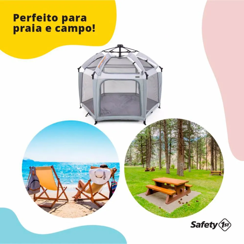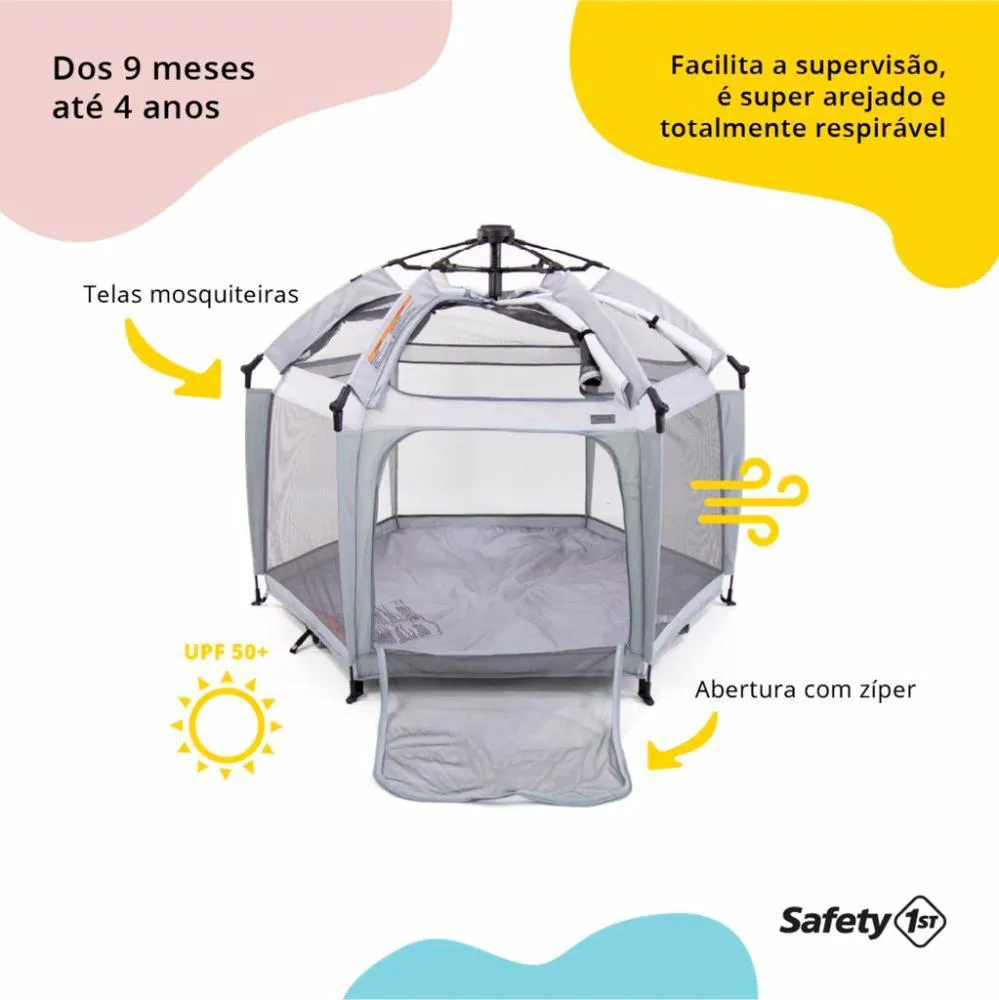 Como especialistas em segurança, nós da Safety 1st sabemos que manter as crianças entretidas e protegidas é o desejo de mães ou pais também nos momentos de lazer e brincadeiras. Divertido e prático, o Cercado Tenda Instapop da Safety 1st, pode ser utilizado em ambientes internos ou externos, é superleve, pesa apenas 3,5 kg, vem com bolsa de transporte e pode ser levado à praia, jardim, campo, varanda etc.