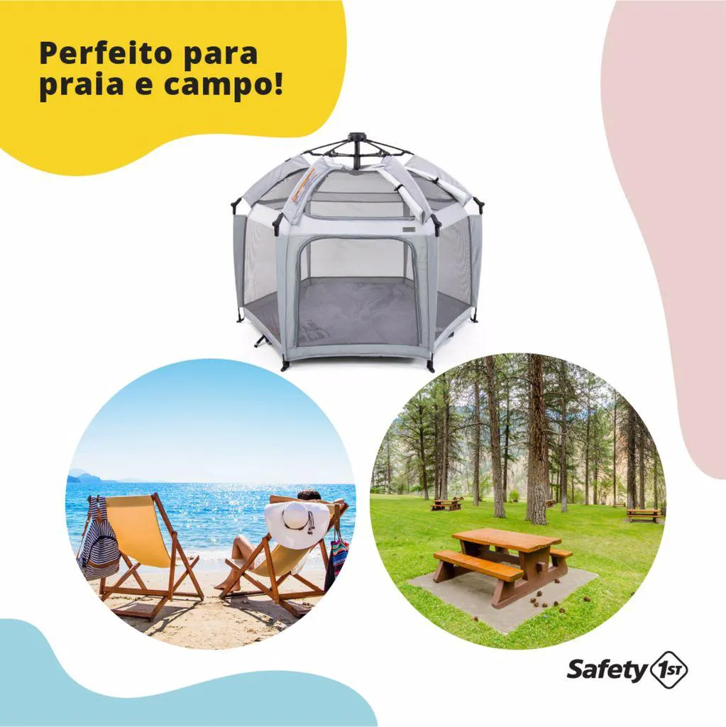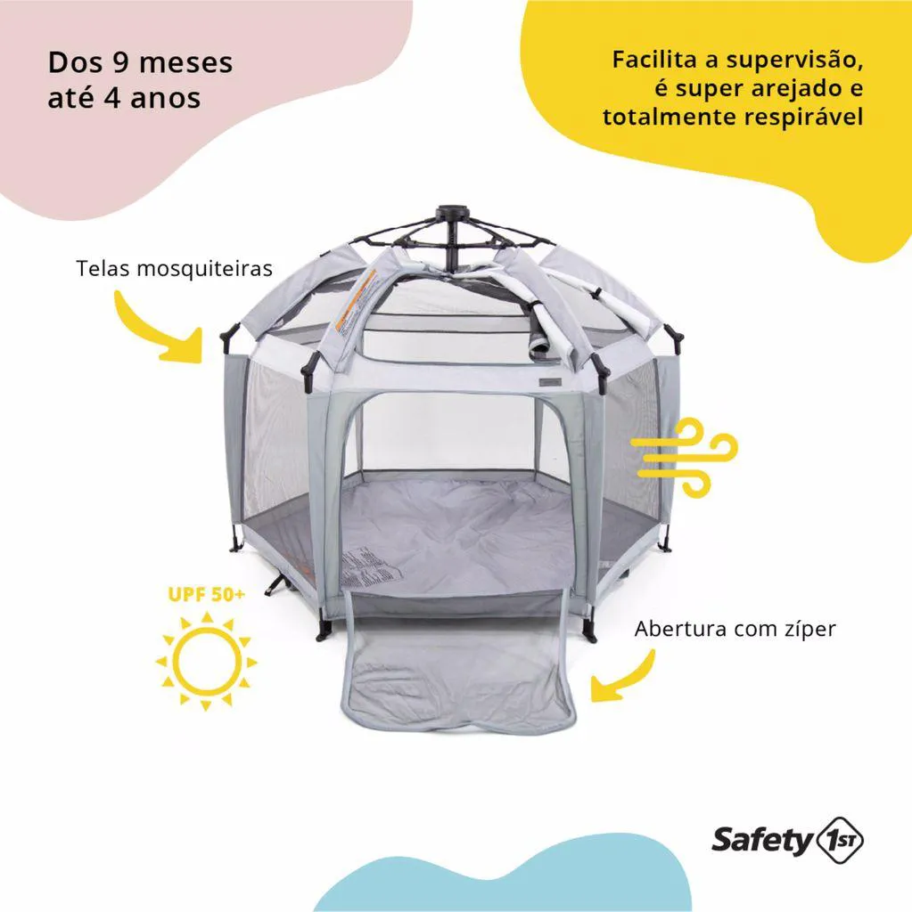 Como especialistas em segurança, nós da Safety 1st sabemos que manter as crianças entretidas e protegidas é o desejo de mães ou pais também nos momentos de lazer e brincadeiras. Divertido e prático, o Cercado Tenda Instapop da Safety 1st, pode ser utilizado em ambientes internos ou externos, é superleve, pesa apenas 3,5 kg, vem com bolsa de transporte e pode ser levado à praia, jardim, campo, varanda etc.