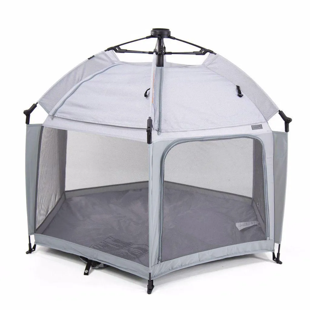 Fácil de carregar e montável em instantes, basta abrir e pronto! Afinal, nos momentos de lazer com as crianças, contar com a facilidade de uma montagem totalmente descomplicada é perfeito, não é mesmo? Além disso, como segurança vem em primeiro lugar, o cercado possui uma trava com indicador que fica verde quando acionado, isso é praticidade e tranquilidade total. Todo em tela facilitando a supervisão, é super arejado e totalmente respirável, junto com os tecidos com FPS UV50+, proporciona proteção extra para que a única preocupação seja quantas brincadeiras inventar dentro do cercadinho. Possui também uma portinha em tela com zíper e trava, para facilitar ou limitar o acesso, quando quiser abra as janelinhas na parte superior e deixe o sol entrar. A Tenda Cercado Instapop não tem limitações de peso, então leve brinquedos, conte histórias, relaxe e aproveite estes momentos especiais com seu filho.