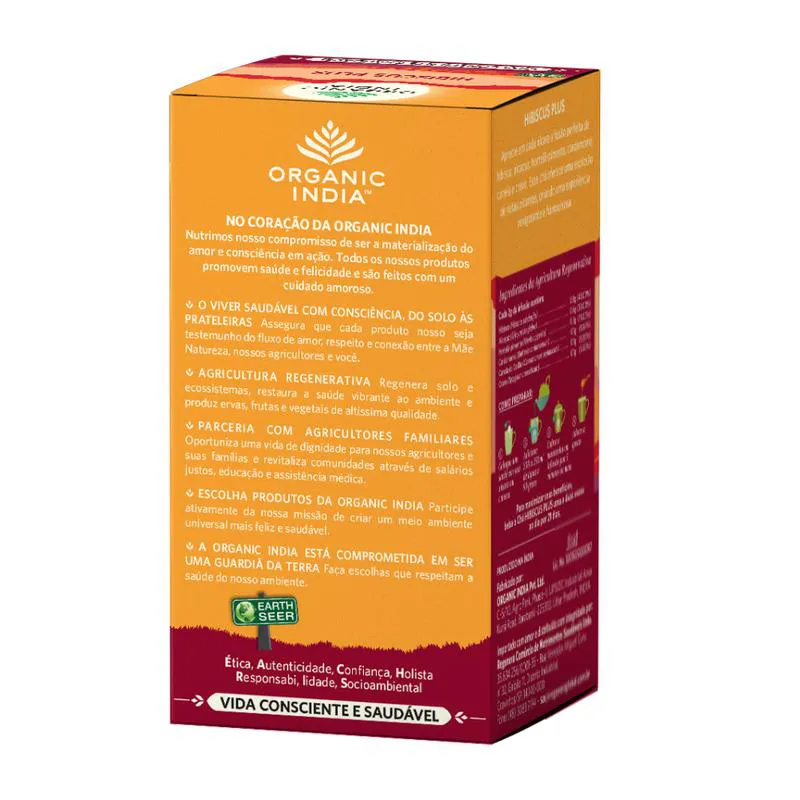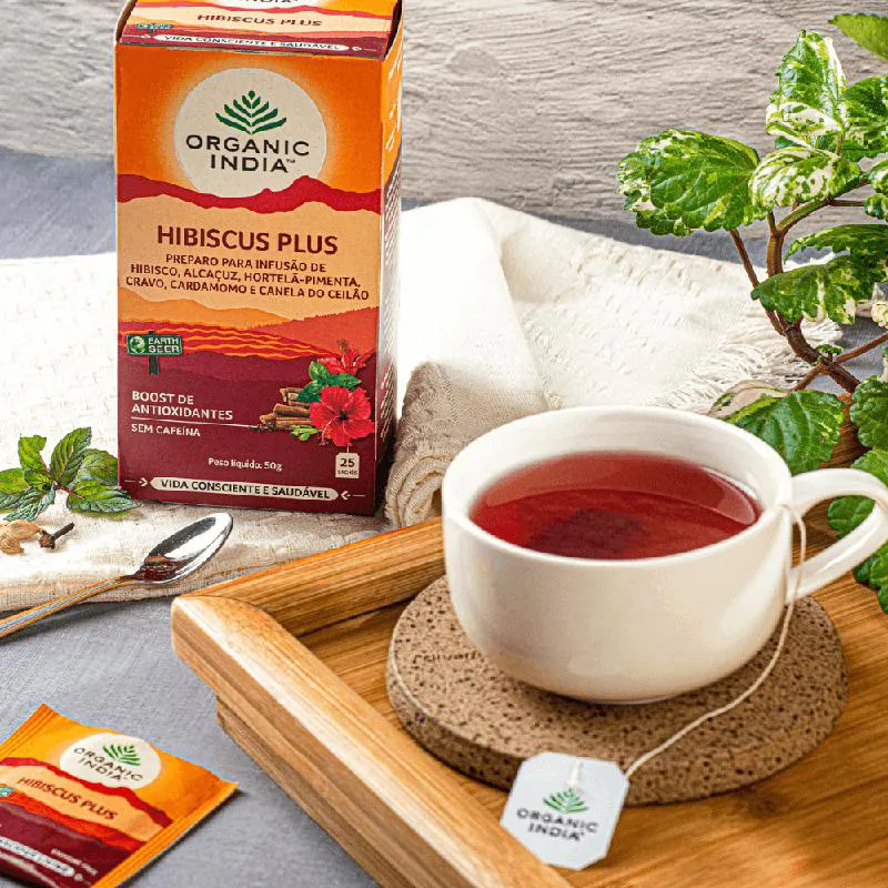 Chá Hibiscus Plus Organic India Caixa com 25 Sachês de 2 g