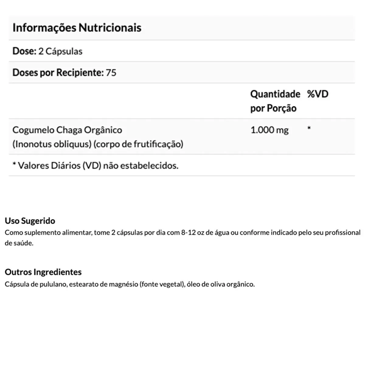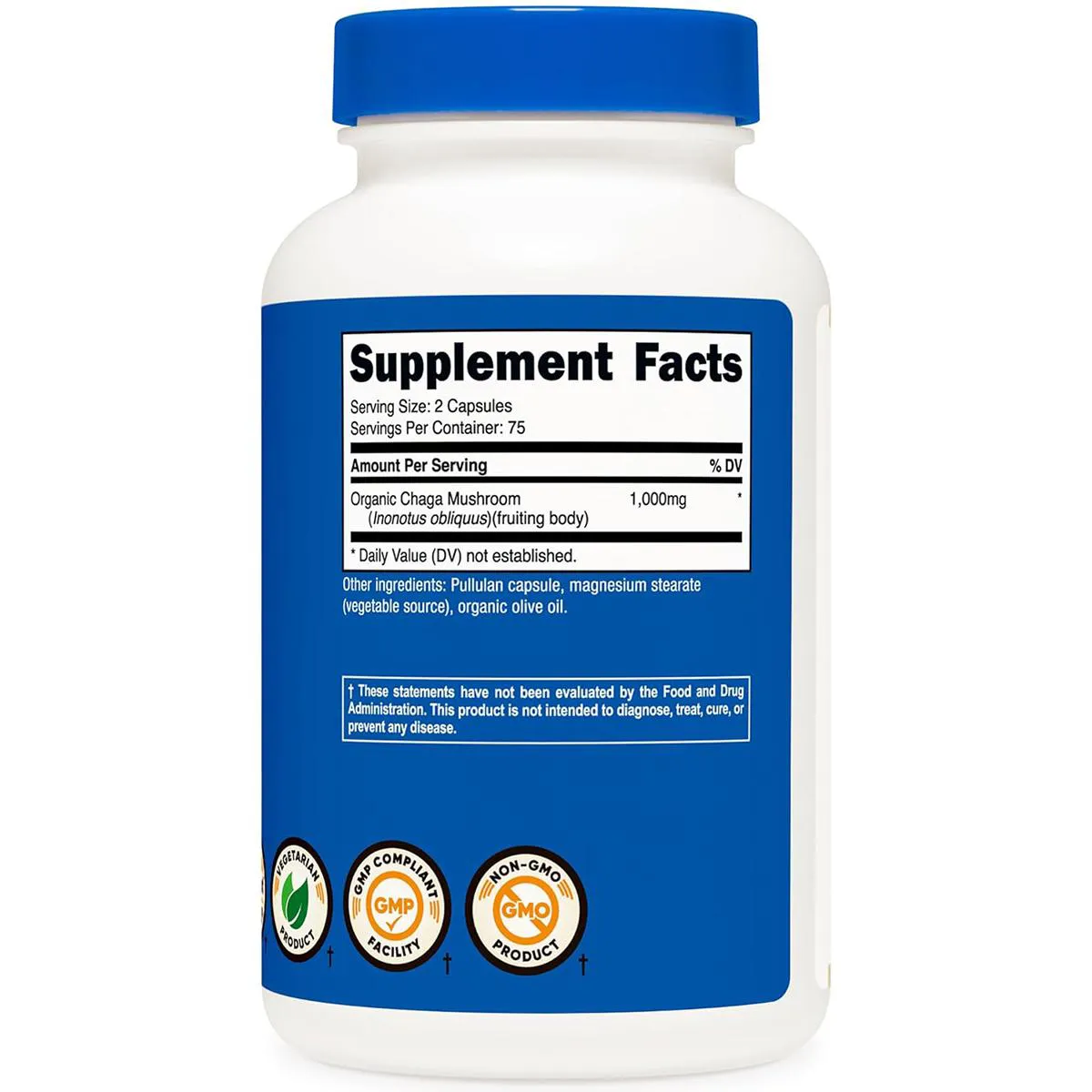 Chaga Mushroom 1000 Mg 150 Cápsulas (500 Mg Cap) Nutricost
