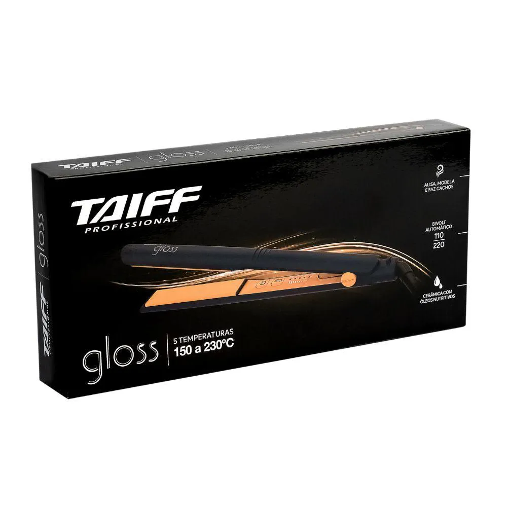========================================================================================= Chapa Taiff Gloss Blue Bivolt A Chapa Gloss transforma a rotina capilar, ao unir inovação e cuidado para um alisamento impecável.