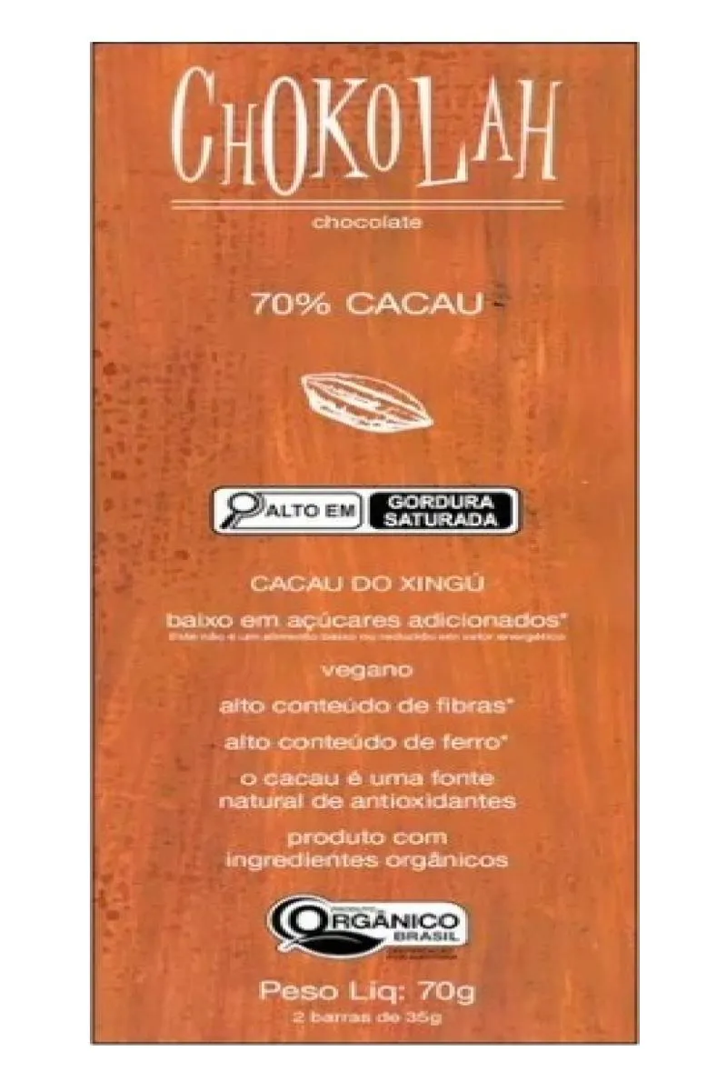 Chocolate 70% Cacau Baixo em Açúcares Orgânico Chokolah 70g