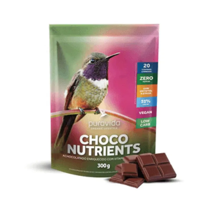 Choco Nutrients é um achocolatado vegano, sem açucar e multivitaminado, acrescentado das formas biodisponíveis de VITAMINAS E minerais que o organismo requer para viver e prosperar. É o principal produto de chocolate da Puravida.