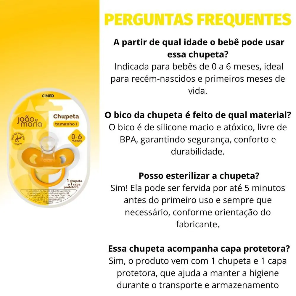 Apresentamos a Chupeta e Capa Protetora Cimed João e Maria 0-6 Meses Tamanho 1, a escolha ideal para o conforto e a segurança do seu bebê. Desenvolvida pela CIMED, esta chupeta é cuidadosamente projetada para os primeiros meses de vida, de 0 a 6 meses, oferecendo tranquilidade para os pais e bem-estar para os pequenos. Com sua composição em silicone de alta qualidade, ela garante uma experiência suave e segura para a pele sensível do bebê, sendo antialérgica e atóxica e livre de substâncias químicas. Imagine a tranquilidade de saber que seu bebê está confortável e seguro, seja durante o sono ou em passeios. A Chupeta Cimed João e Maria não é apenas uma chupeta, é um investimento no bem-estar do seu filho, proporcionando momentos mais calmos e felizes para toda a família.Benefícios Principais