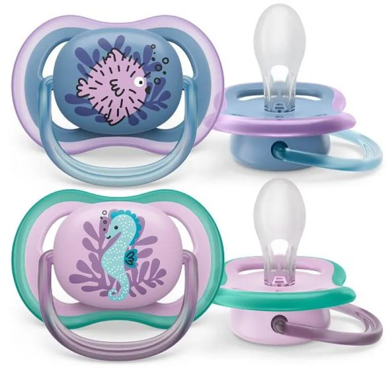 O que é e para que serve a chupeta Ultra Air Dupla Decorada 6-18M Azul E Rosa Philips Avent Scf085/61?