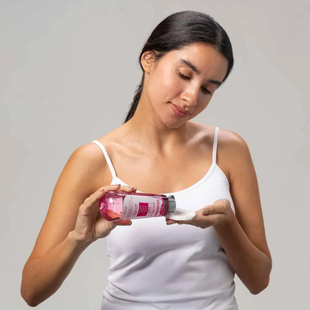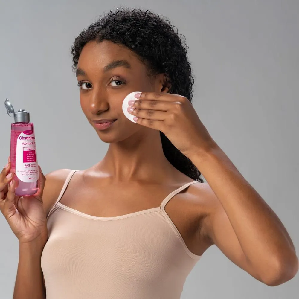 Cicatricure Água Micelar é enriquecida com água de rosas. Contém micelas que, com uma única passada, atuam como ímãs para capturar a sujeira, a maquiagem e a oleosidade da pele. 5 benefícios em 1 só produto: Limpa; Demaquila; Hidrata; Tonifica; Refresca.