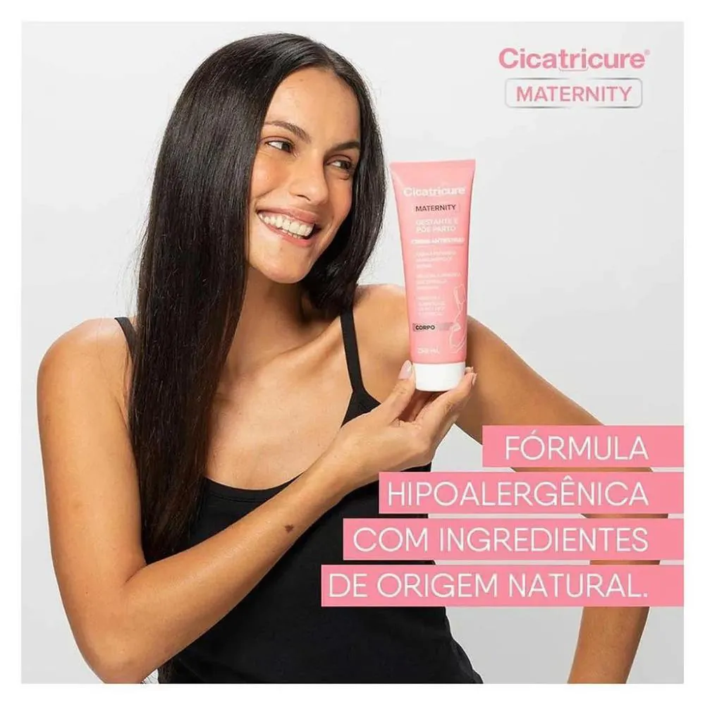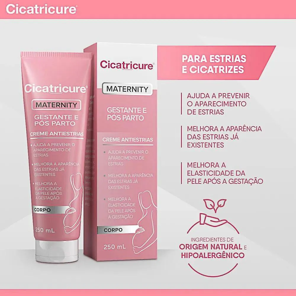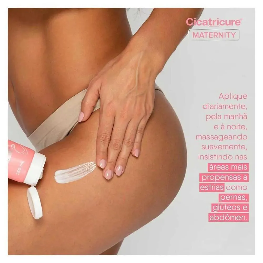 Cicatricure Maternity Creme Corporal Antiestrias para Gestante E Pós Parto 250g (7898636190911) Ajuda a prevenir e melhorar a aparência de estrias. Contribui para a firmeza da pele após a gestação. Fragrância suave, adequada para gestantes. Fórmula com ingredientes de origem natural. Hipoalergênico e dermatologicamente testado.