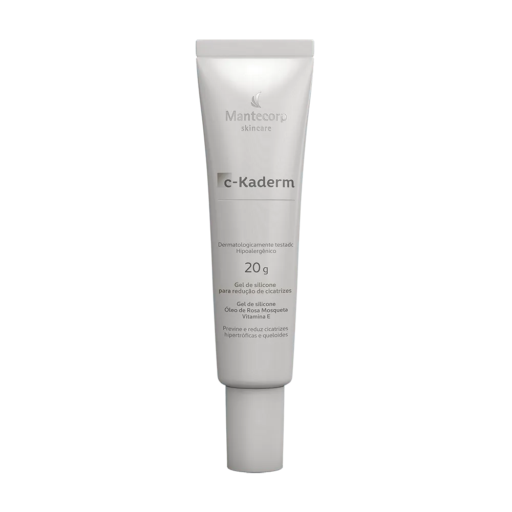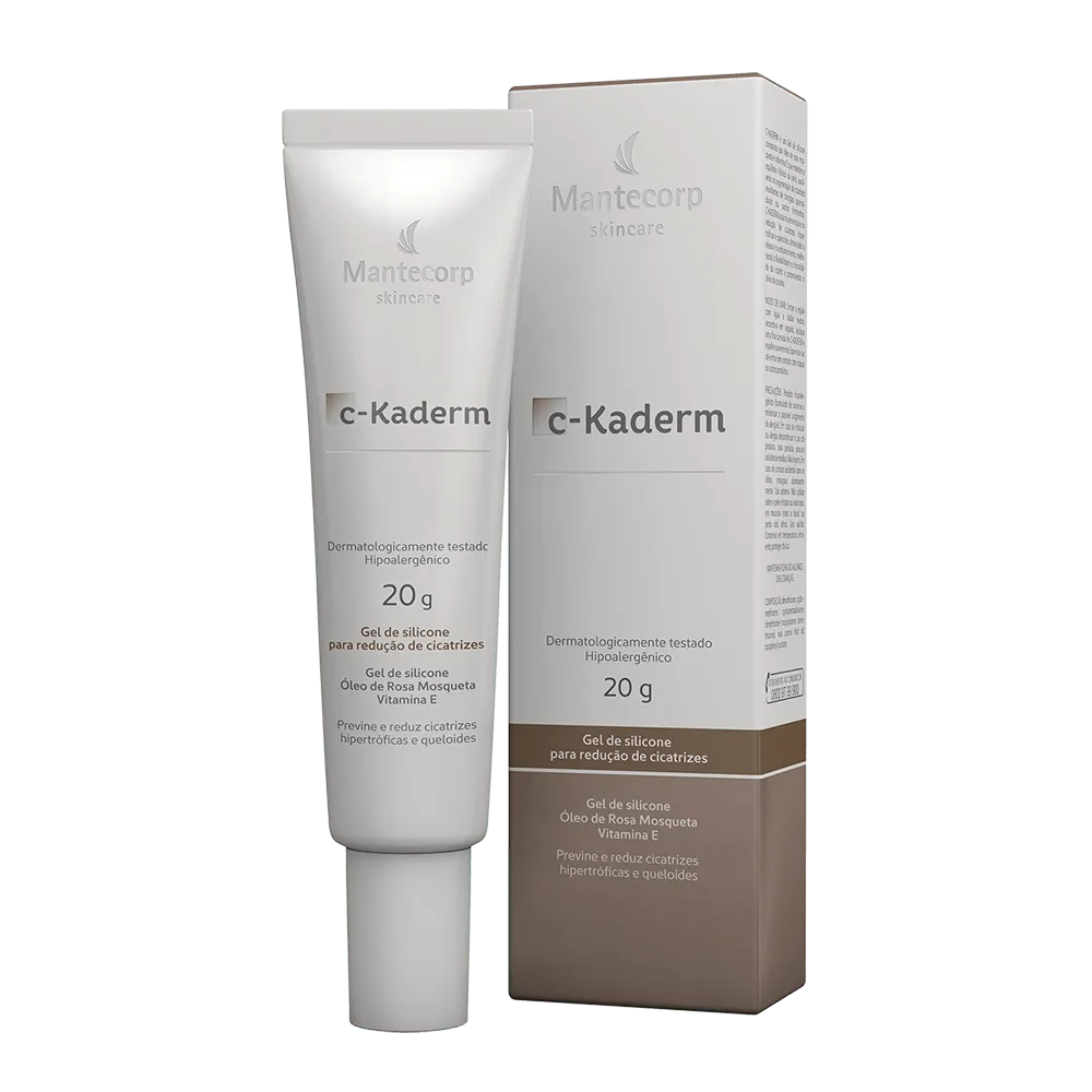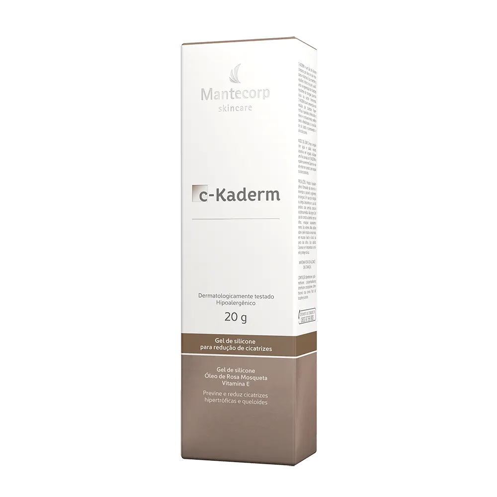 C-Kaderm é um Gel de silicone composto por óleo de rosa mosqueta e vitamina e que mantém o equilíbrohídrico da pele, auxiliando na regeneração de cicatrizes resultantes de cirurgias, queimaduras ou outrosferimentos. Atua na prevenção e na redução de cicatrizes hipertróficas e queloides, diminuindo o relevo eo endurecimento, melhorando a flexibilidade e a tonalidade da cicatriz e promovendo o alívio da coceira.