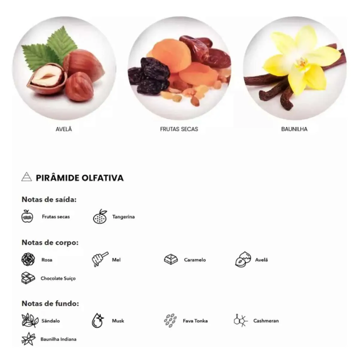 - Combina baunilha indiana, avelã e chocolate suíço.