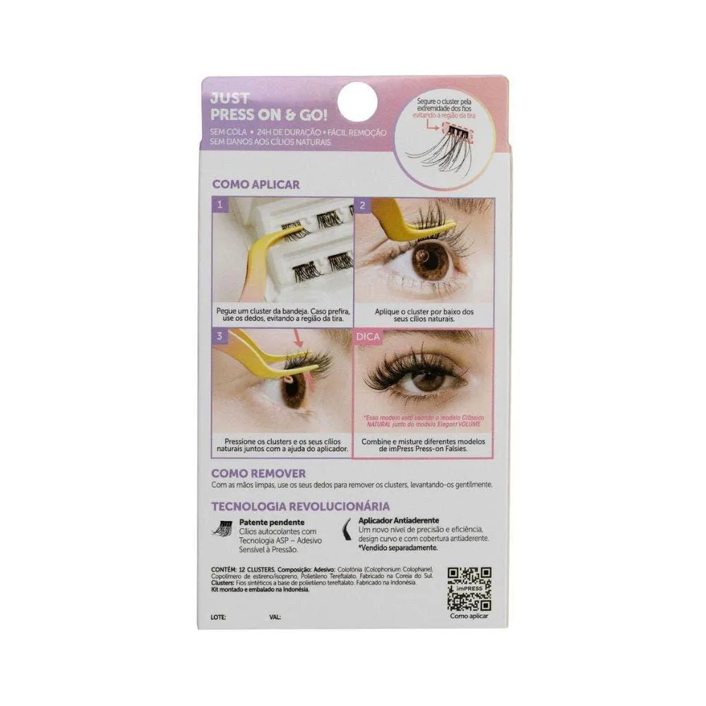 imPRESS Press-on Falsies é a primeira linha de cílios postiços autocolantes do mercado. Sem cola, sem tempo de secagem e sem danos aos cílios naturais. Com Tecnologia ASP (Adesivo Sensível à Pressão), a mesma das unhas imPRESS, os clusters de cílios possuem adesivos autocolantes que aderem instantaneamente ao cílios naturais. Com apenas 1 passo e em 10 segundos, garanta 24 horas de duração e aparência 100% natural. Nunca mais tenha medo de aplicar cílios postiços! O REFIL é o ideal para repor os seus cílios favoritos ou testar novos modelos!. Modo de Uso: