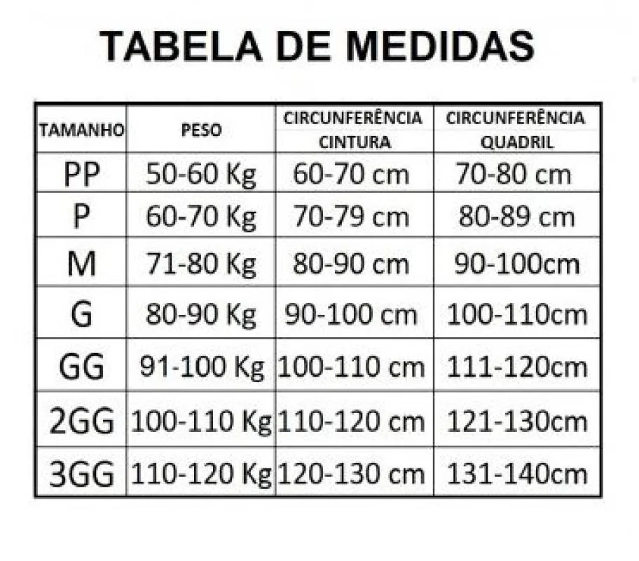- Disponível nos tamanhos: P, M, G e GG;