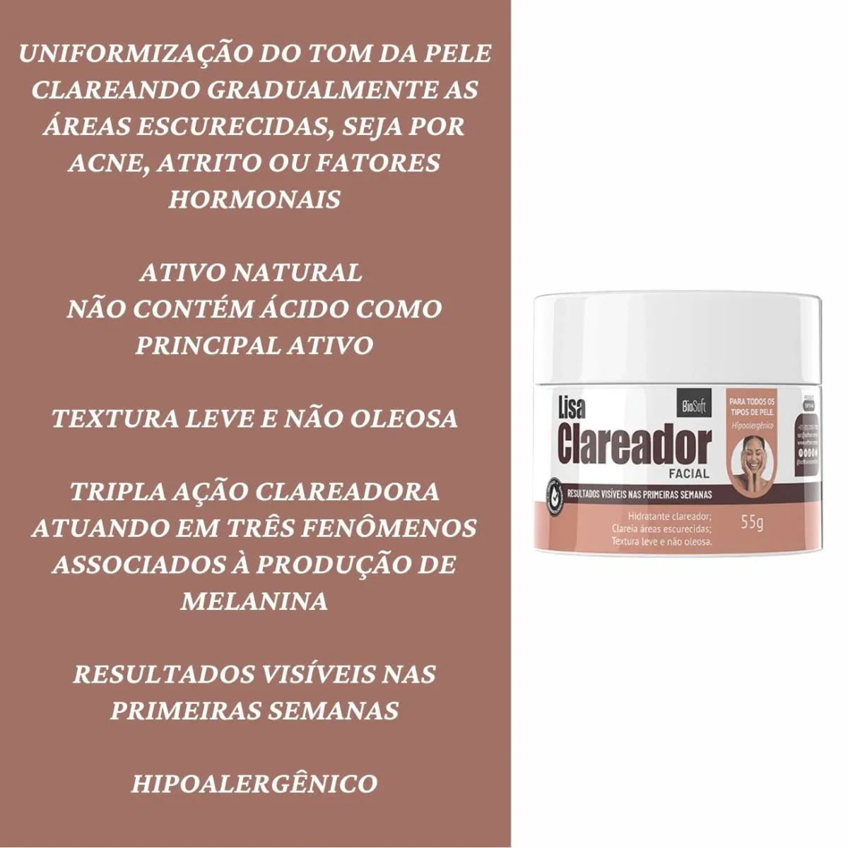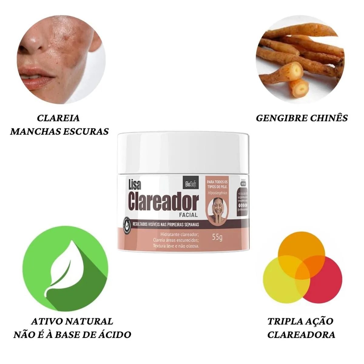 1 Clareador Facial Bio Soft Lisa 55g