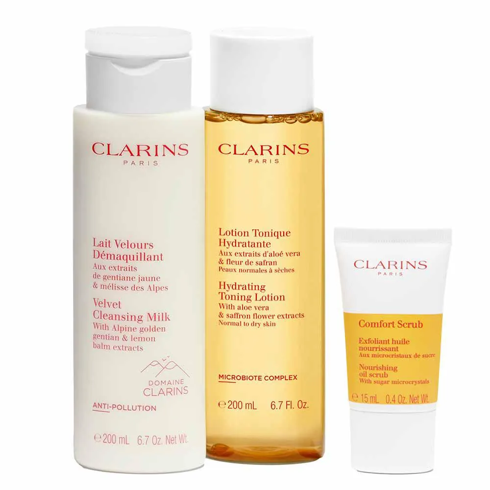 Clarins Cleansers And Toning Kit - Tônico Facial + Esfoliante Facial + Leite Demaquilante