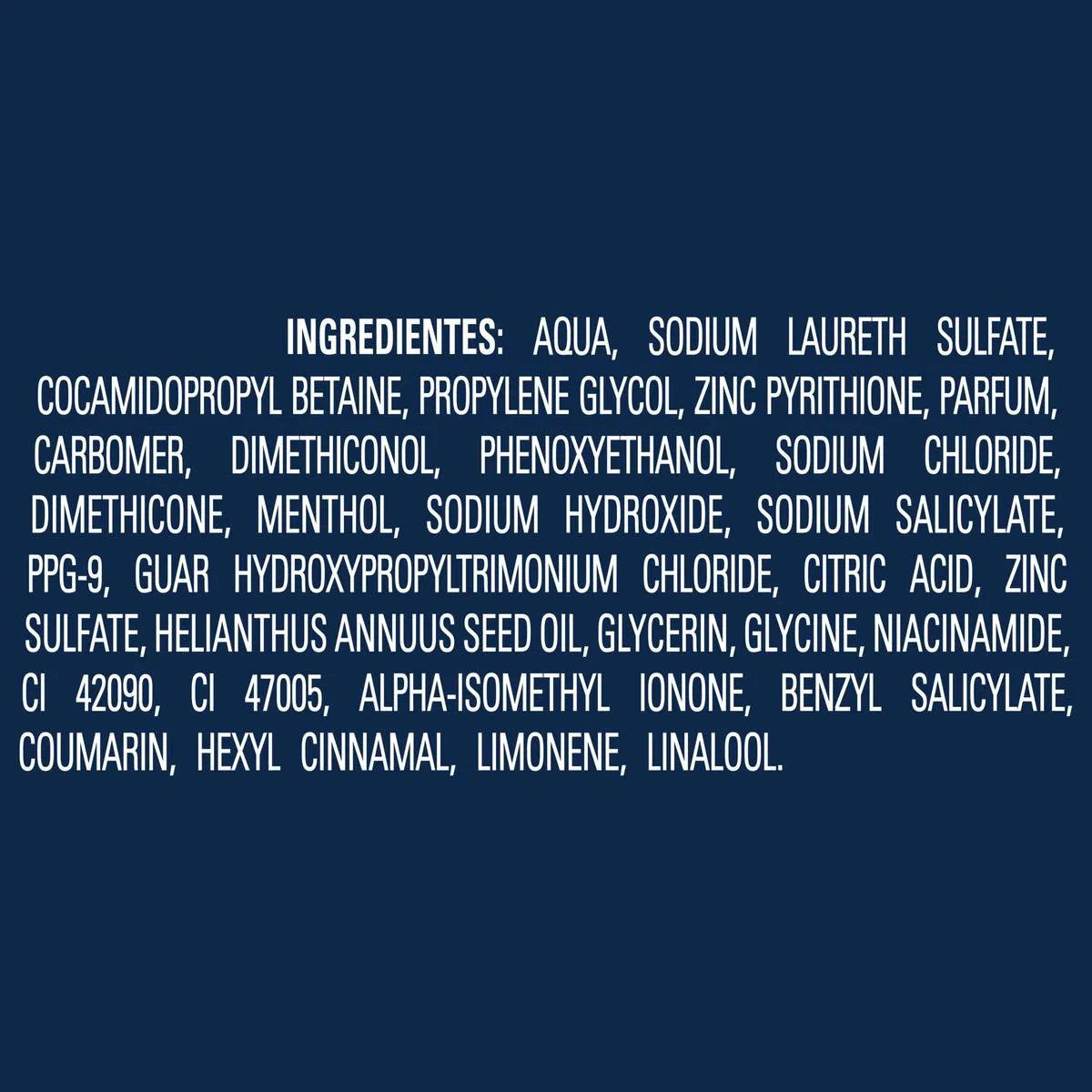 Aqua, Sodium Laureth Sulfate, Cocamidopropyl Betaine, Propylene Glycol, Zinc Pyrithione’, Parfum, Carbomer, Dimethiconol, Phenoxyethanol, Sodium Chloride, Climbazole, Dimethicone, Menthol, Sodium Salicylate, Ppg-9, Guar Hydroxypropyltrimonium Chloride, Zinc Sulfate, Helianthus Annuus Seed Oil’, Glycerin’, Glycine’, Niacinamide’, Ci 42090, Ci 47005, Alpha-Isomethyl Ionone, Benzyl Salicylate, Butylphenyl Methylpropional, Coumarin, Hexyl Cinnamal, Limonene, Linalool, Citric Acid, Sodium Hydroxide. ’Componentes Do Bio-Booster.