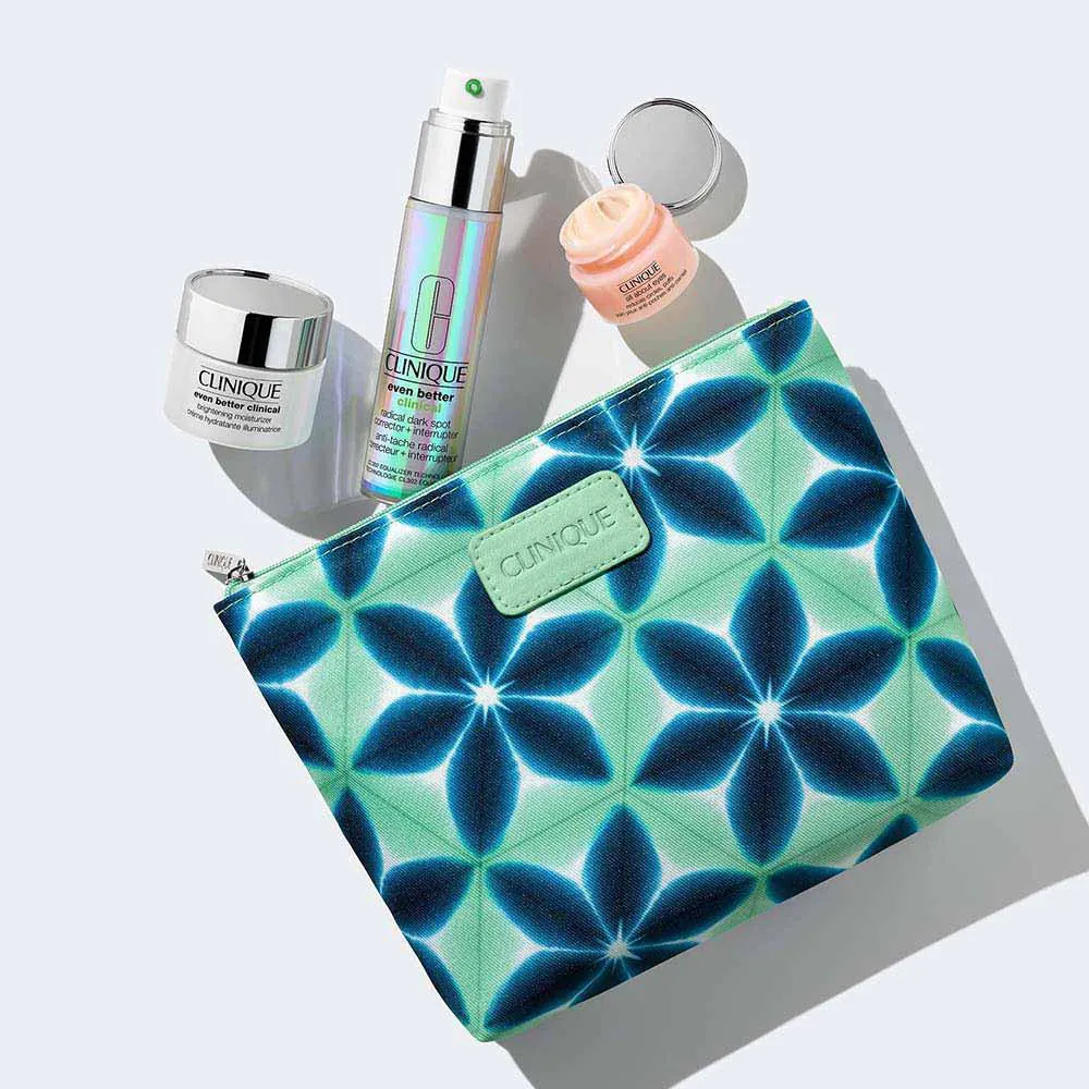 Este kit inclui quatro produtos incríveis: o Sérum Clareador Even Better Clinical Radical Dark Spot Corrector + Interrupter, o Hidratante Facial Even Better Clinical Brightening Moisturizer, o Gel-creme Olhos All About Eyes e um nécessaire prática para transportar seus itens essenciais de beleza.