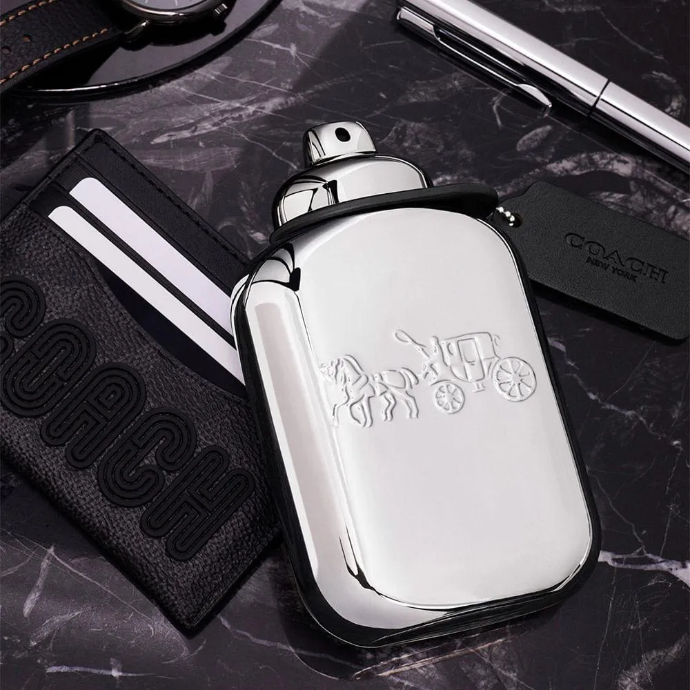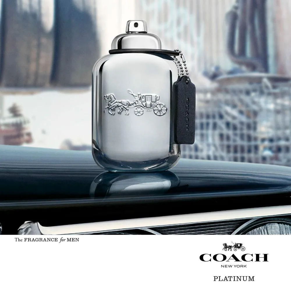 Coach Platinum é inspirado em uma viagem americana que começa e termina em Nova York. Dinâmico e quente, incorpora o lado aventureiro do homem Coach. Ele continua sua viagem, dirigindo seu Carro vintage na estrada para liberdade. Mas suas viagens sempre o trazem de volta para a cidade de Nova Iorque, onde o seu coração mora.