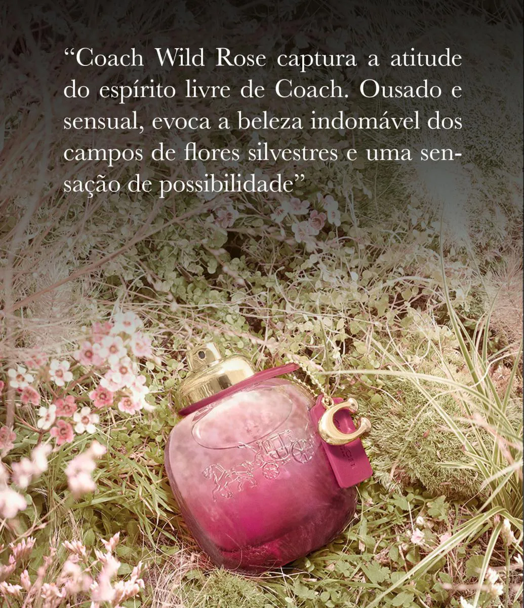 “O Coach Wild Rose captura a atitude de espírito livre do Coach. Ousada e sensual, evoca a beleza indomável dos campos de flores silvestres e um sentimento de possibilidade", diz o Diretor Criativo do Coach Wild Rose.