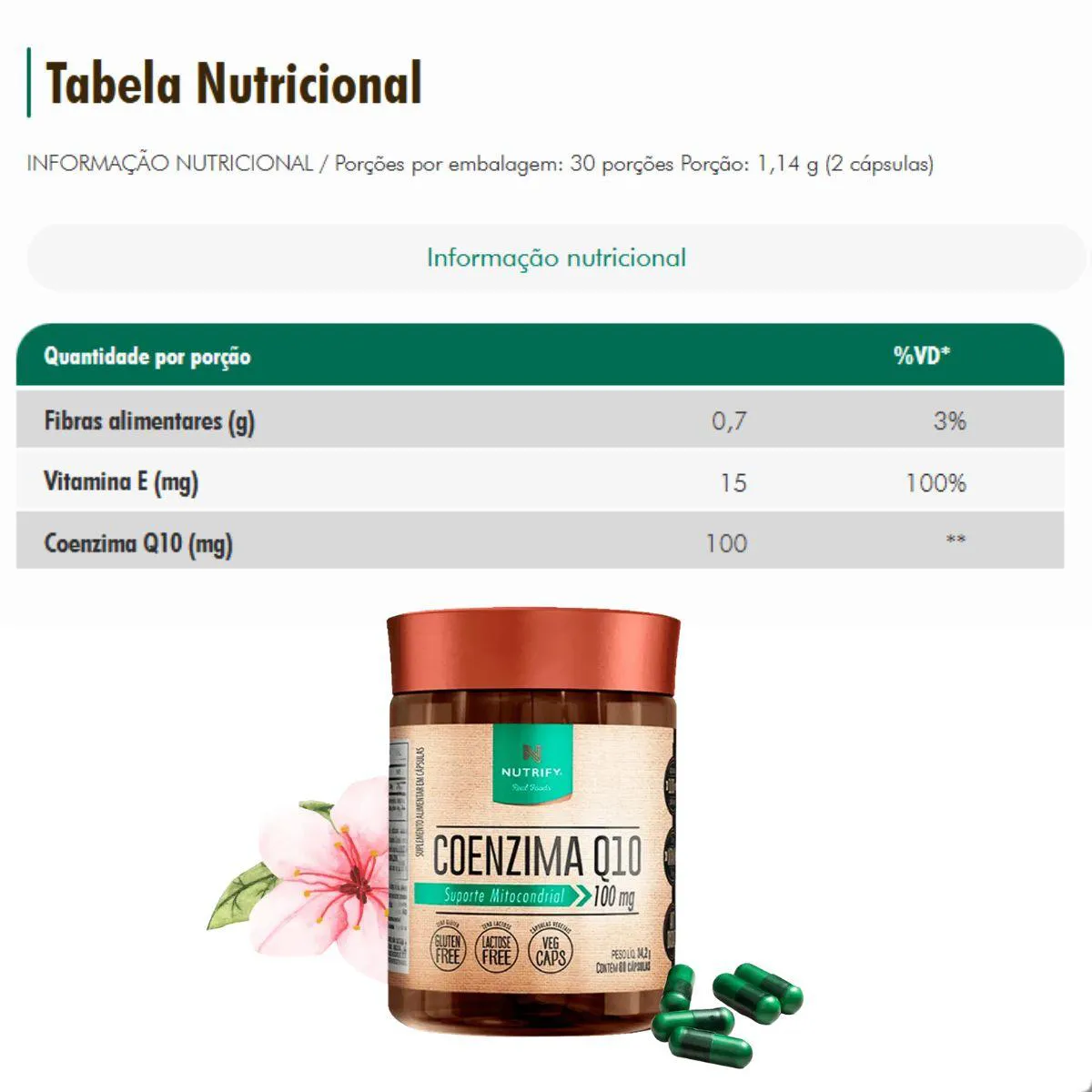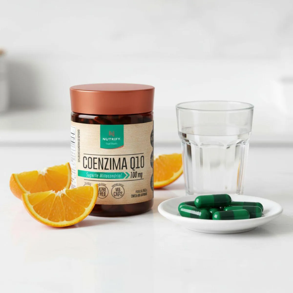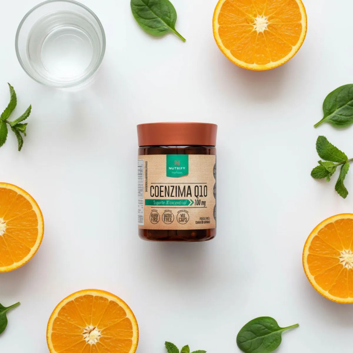 Sua composição utiliza coenzima Q10 de alta qualidade, sem aditivos artificiais, conservantes ou ingredientes supérfluos. A abordagem clean label reflete a essência da Nutrify: fórmulas clareadas, centradas no essencial e com rigor na seleção da matéria-prima.
