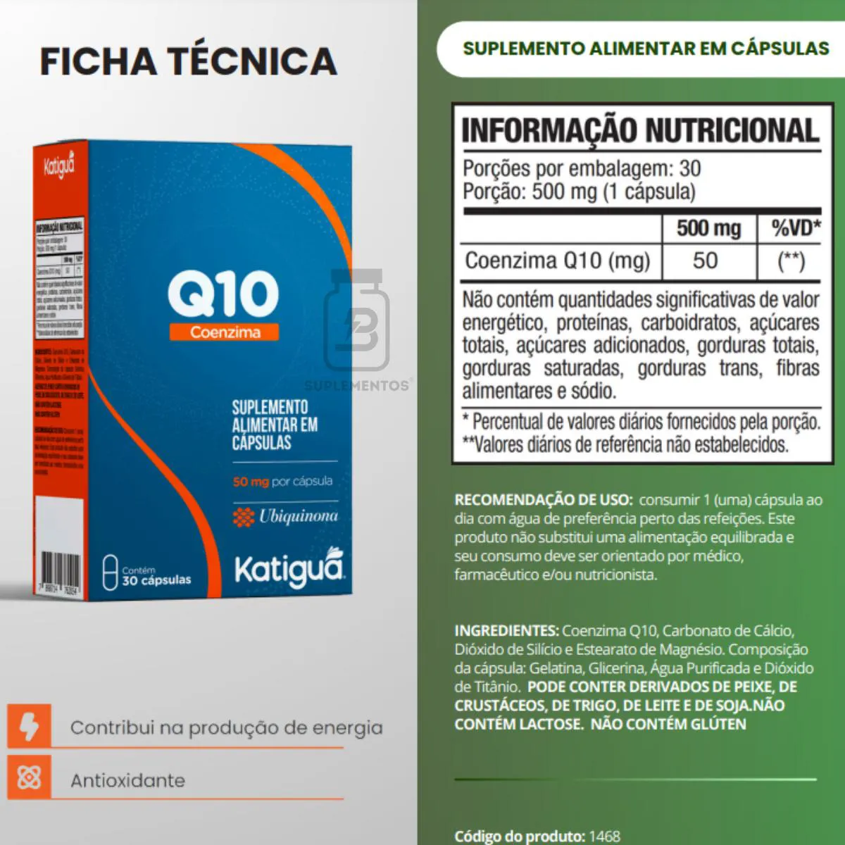 - Contém 50mg de Coenzima Q10 por cápsula;