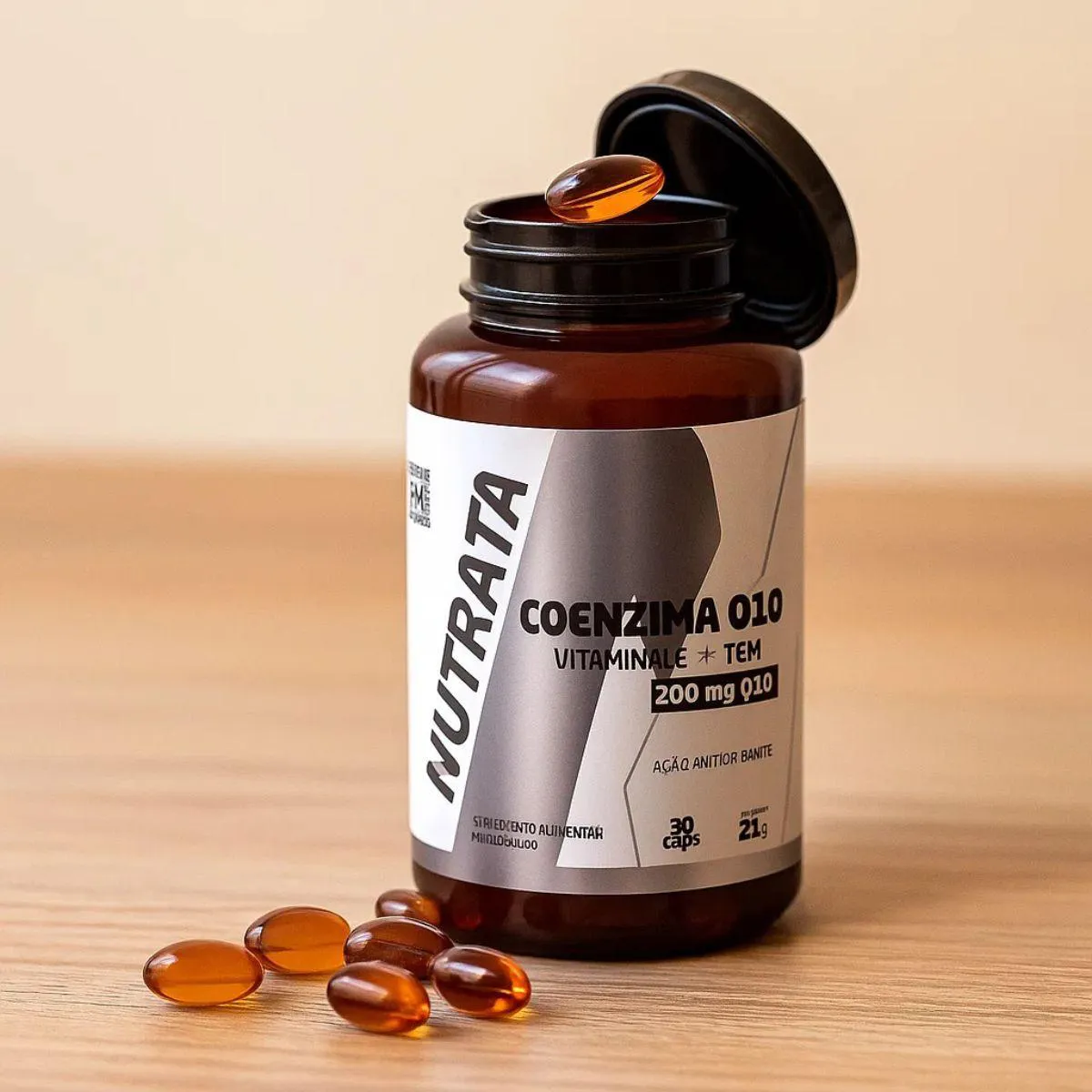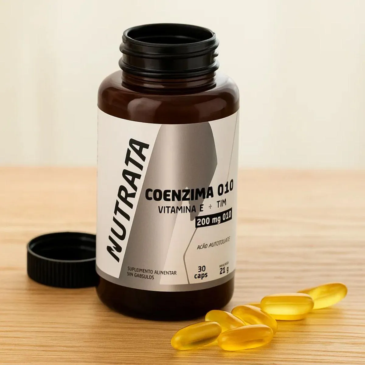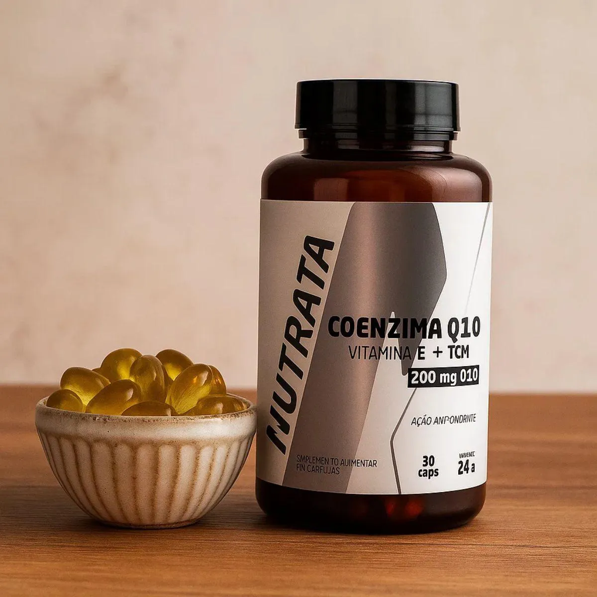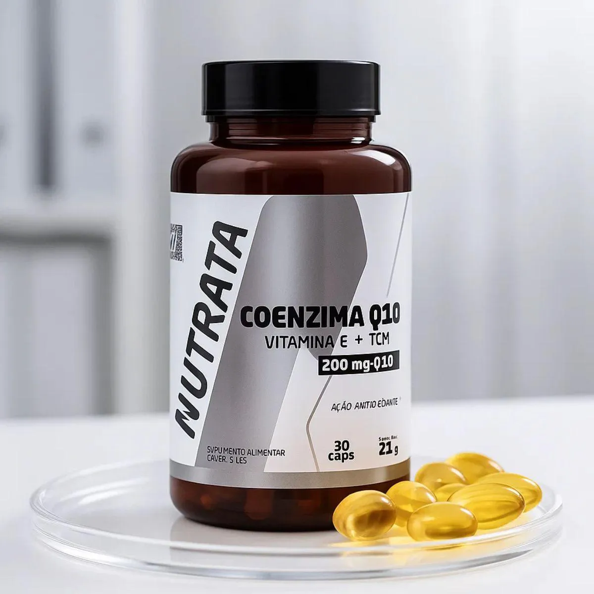 O produto é um suplemento nutricional composto por cápsulas softgel de Coenzima Q10 (200mg), combinado com triglicerídeos de cadeia média (TCM) e vitamina e. Trata-se de um suplemento puro, sem conservantes, glúten ou lactose, apresentado em 30 cápsulas pela marca Nutrata. Serve para apoiar a nutrição funcional, potencializar energia e contribuir para um estilo de vida ativo, sendo de fácil consumo e deglutição, ideal para pessoas que buscam praticidade e qualidade nutricional no seu dia a dia.